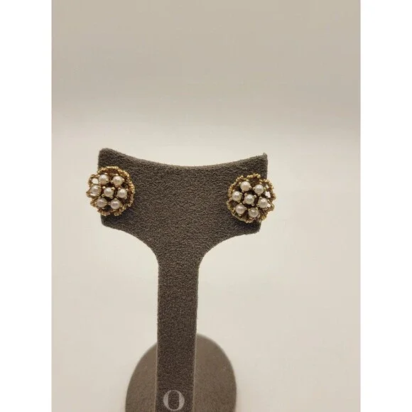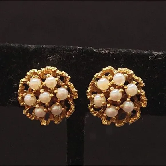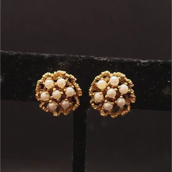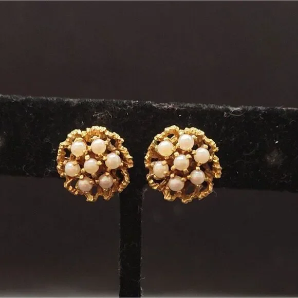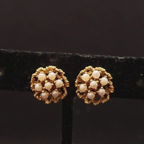 Excellent ConditionUnique Vintage Victorian 585 14kAkoya pearlCultured Clip on7 Pearls on each earring Total of 14 Small pearls VictorianVery Pretty In personL 85
