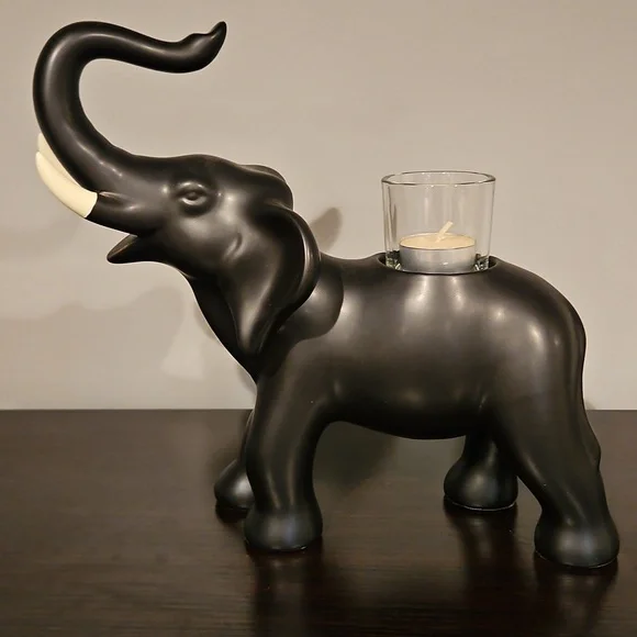 African Inspiration. Trumpeting Elephant Candle Holder.In Excellent Condition minus 1 tiny chip by the candle holder (see pic).Approx measurements:Height: 10 inchesLength: 10 inchesWidth: 5 inchesComes with original box.I also have the giraffe & zebra. Can´t bundle all 3Questions? Leave a comment below!
