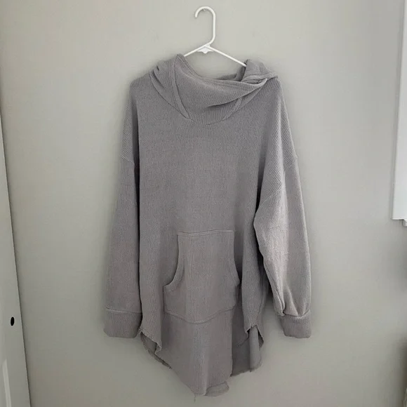 Stylish cream hoodie dress with a relaxed fit. Features a cozy front pocket. Great condition!