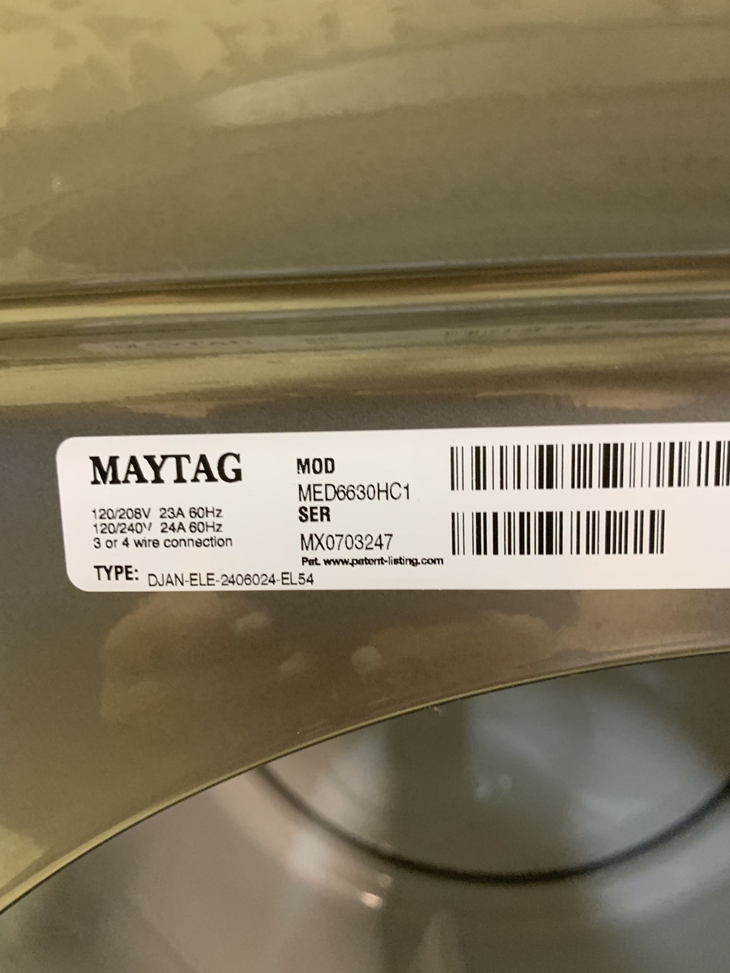 NEW S/D WITH 1 YEAR MANUFACTURER WARRANTY MAYTAG Electric Dryer with 7.3 Cu. Ft. Capacity, Extra Power Button, Advanced Moisture Sensing, 12 Dry Cycles, Steam Options, Steam-Enhanced Dryer, Quick Dry Cycle, Sanitize Cycle, Wrinkle Prevent Option, Reduce Static Option, ADA Compliant, and ENERGY STAR® Certified: Metallic Slate. Retail Price $1149 Our Price $849.99. Pedestal Available. Financing and Delivery Available.