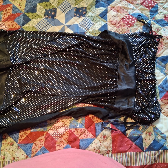Elegant black dress with sparkling silver accents. Perfect for formal occasions.