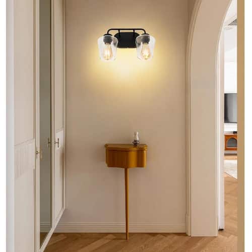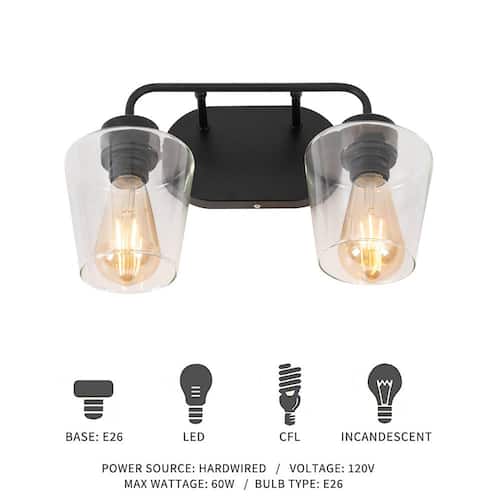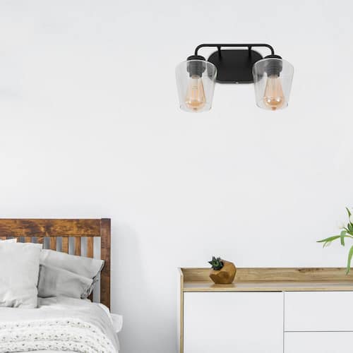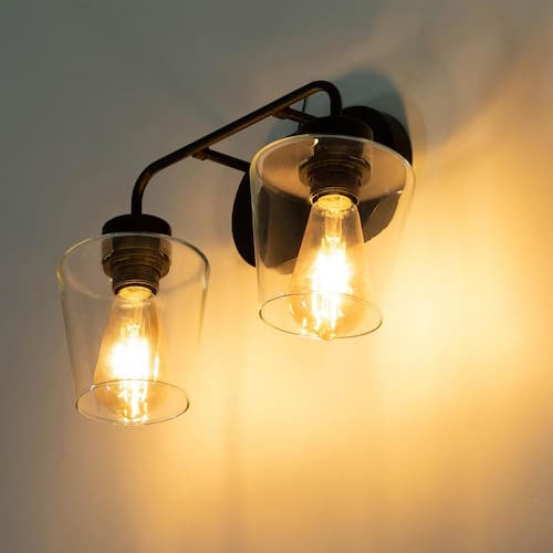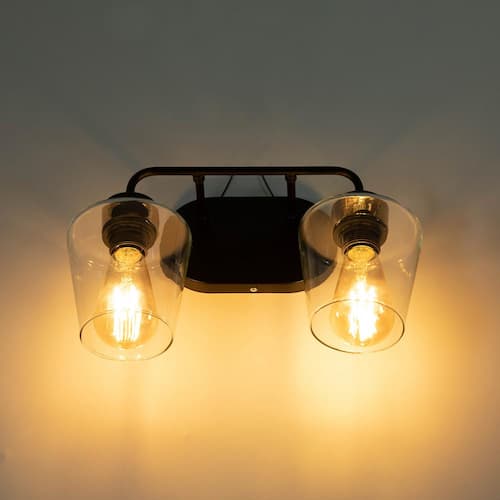 About This Product:This 2-lamp wall light will add beautiful lighting to your bedroom or livingroom, making it the excellent choice for modern spaces. Using a wine glass shade and black backplate, this 2-light wall light can be mounted up or down, appropriately blending home decor from modern minimalist to rustic farmhouse to add a classic ambiance to any space. With an application area of 53.8sq. ft., it is suitable for restaurants, hotels, coffee shops, and home decor, such as mirrors above, corridors, closets, changing rooms, kitchens, bedrooms, foyers, entrances.