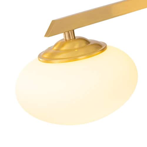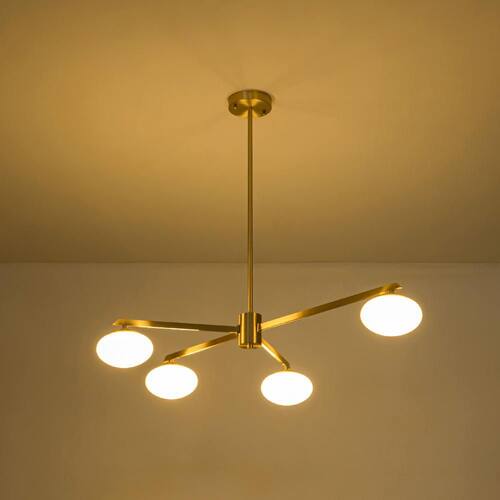 About This Product:Elevate your interior with the versatile elegance of the Lumo Orb 4-Light Chandelier. Designed for both flush-mount and pendant installation, this fixture combines sleek metal arms with oval frosted glass shades to create a warm, inviting glow. Its adjustable height and premium brushed gold finish make it ideal for kitchens, dining areas, or living rooms. Pair it with other Lumo Orb lights for a cohesive, modern look.