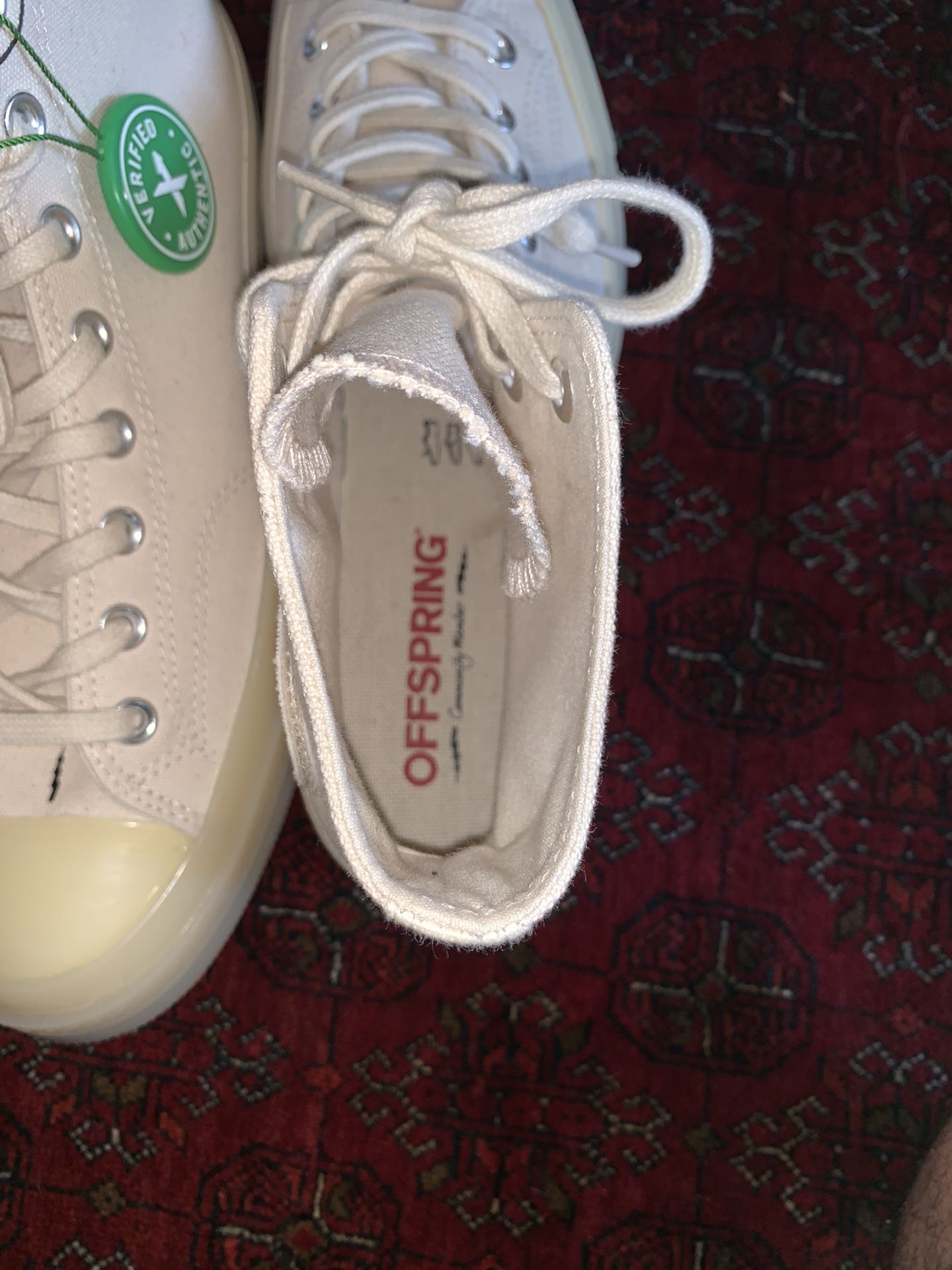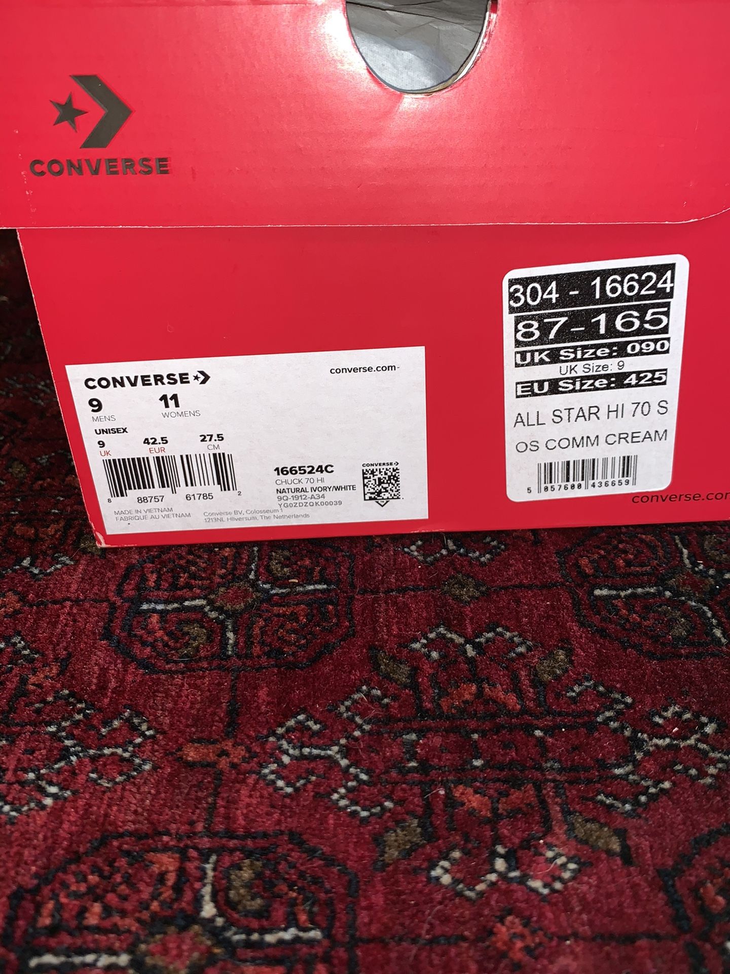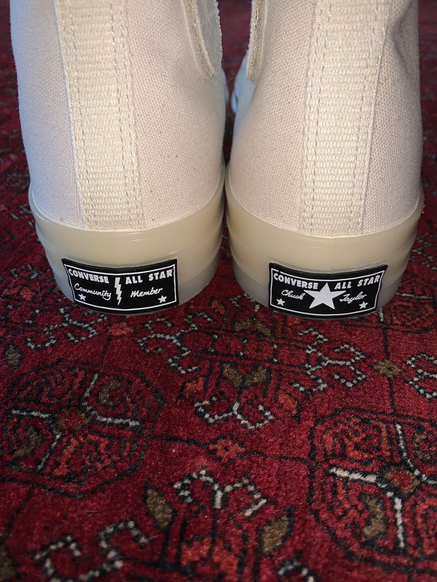 Brand new Converse hi top shoes. I purchased them for about 200. Only tried them on once but it was one size too big. They come with the original box and laces. Note that Converse tend to run 1 or 1 1/2 size bigger so if you are a 9 then you would be an 8 or 7 1/2 in converse. OBO No low ballers!Asking $185