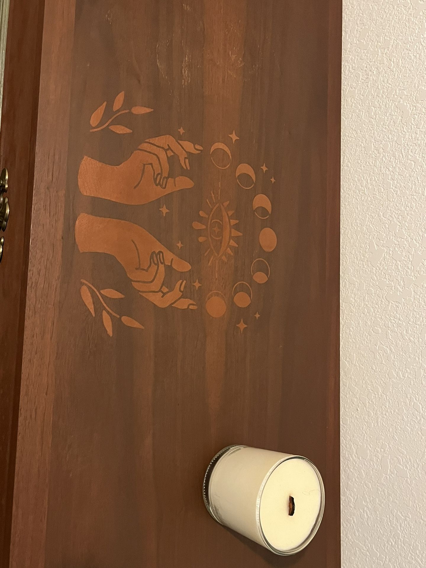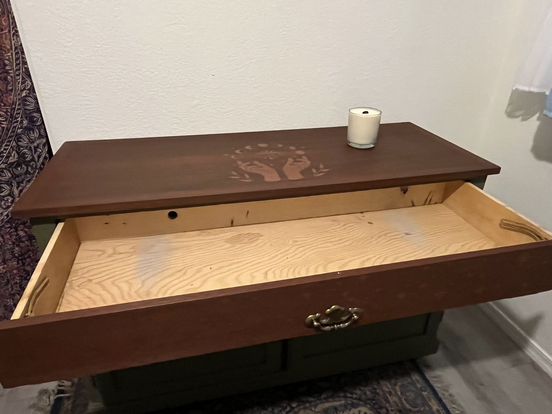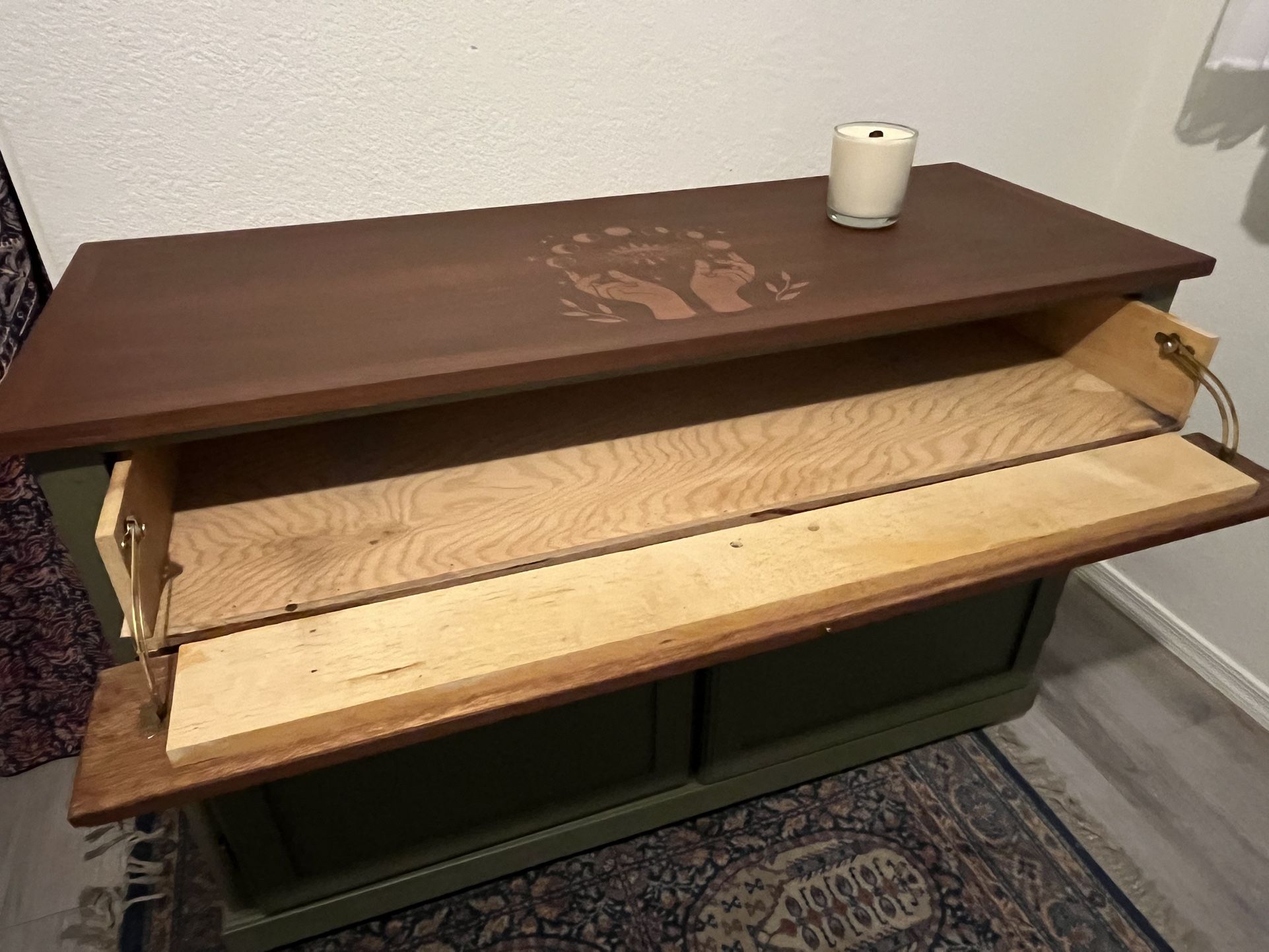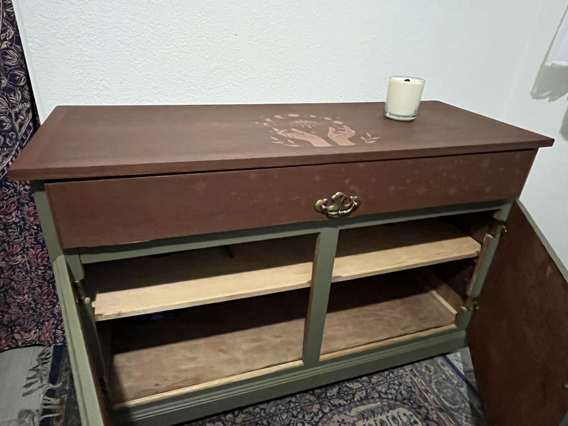 Unique vintage credenza refinished with a unique moon and stars theme. Freshly painted , sanded and stained.