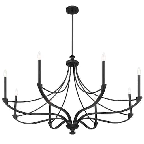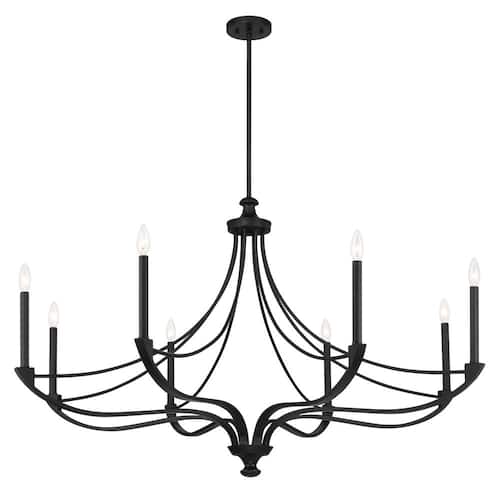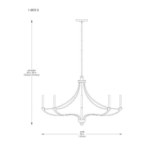 About This Product:This Savoy House Preserve 8-light chandelier is an excellent choice for brightening up a large space. Its elegantly curving arms bring lots of style without being too bulky. The Warm Brass finish is pleasing and the 50 in. width means it will make a big impression. Preserve has an adjustable h8 ranging from 30 in. to 84 in. Comes with four 12 in. downrods and one 6 in. downrod. It uses 8 candelabra size bulbs of up to 60-Watts per bulb. Bulbs not included.