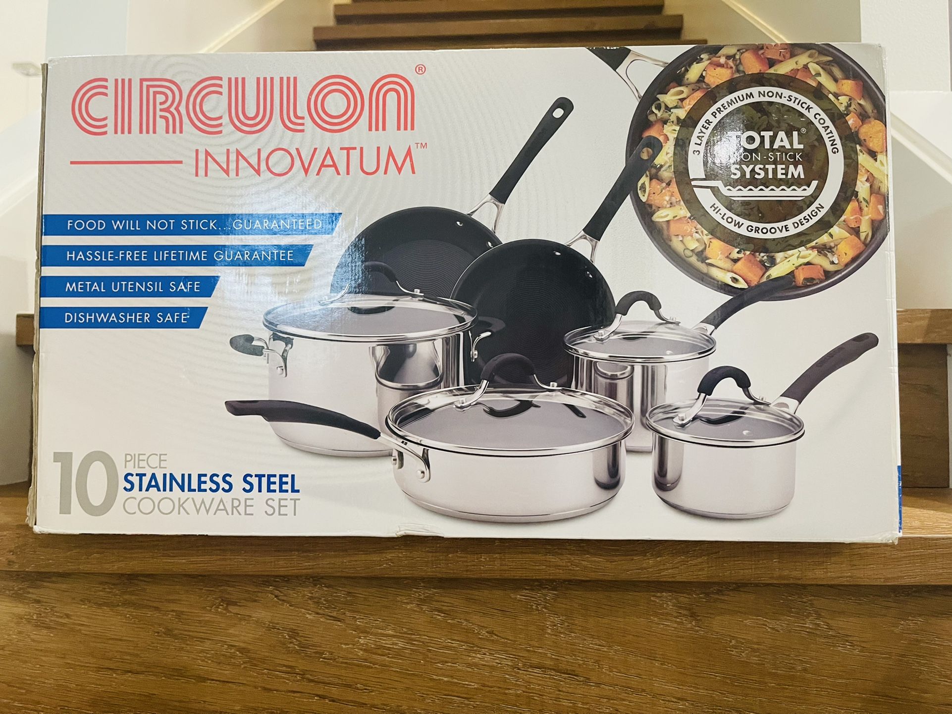 New 10- Piece Stainless Steel Circulon Cookware SetThe total non-stick system Retail $149.99Asking $100