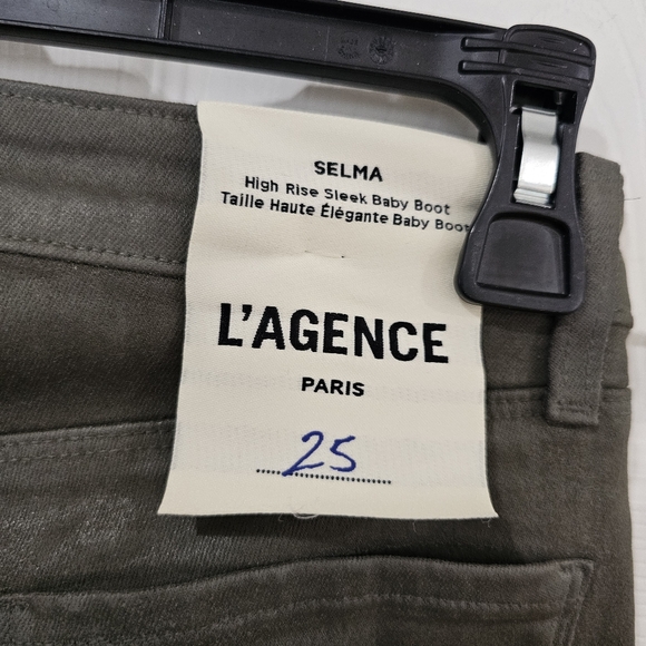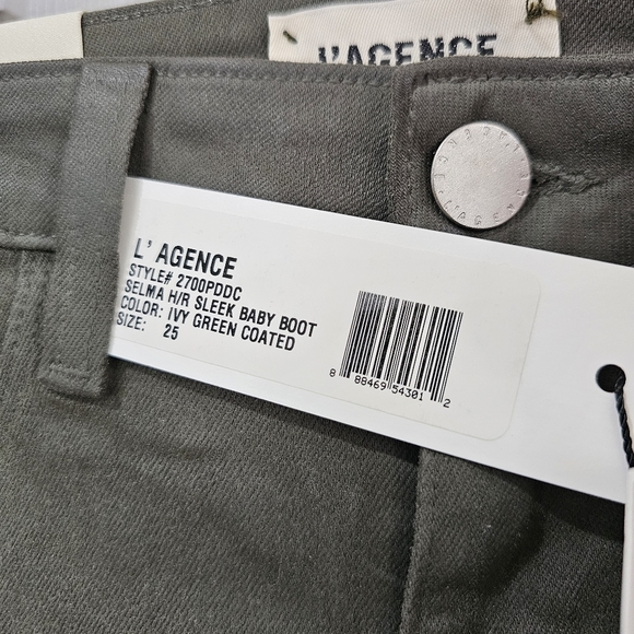 New with tagL´Agence "Selma" jeans in stretch denim with a sleek coating Approx. 34" inseam High rise Button/zip fly; belt loops Five-pocket style Slim fit through boot-cut legs Full length Cotton/elastane/spandex Dry clean, spot clean Made in USA#27