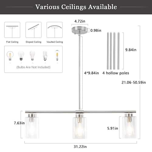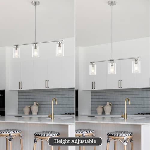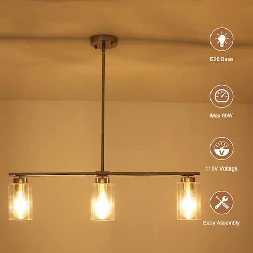 About This Product:Introducing a touch of minimalist modern 3-light vapor glass shade pendant light with textured glass shades. Made of quality metal with a clear glass shade, when the fixture is illuminated it gently diffuses the light. This 3-Light Vapor Bubble Glass Shade Pendant Light is a unique and perfect accent for a modern or farmhouse home, with minimal lines and modern hues giving the light an edge that never disappoints. Update your decor with this stylish chandelier design.