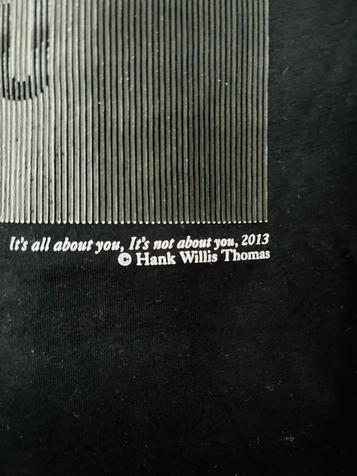 print that changes depending on perpectivw from „It’s All About You“ to„It’s Not About You“by Hank Willis Thomasonly worn once