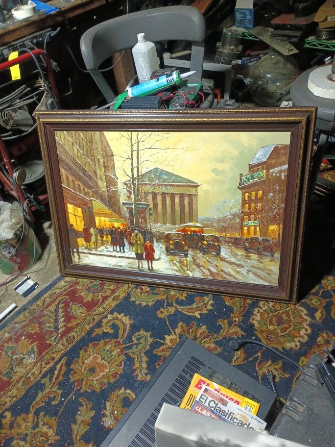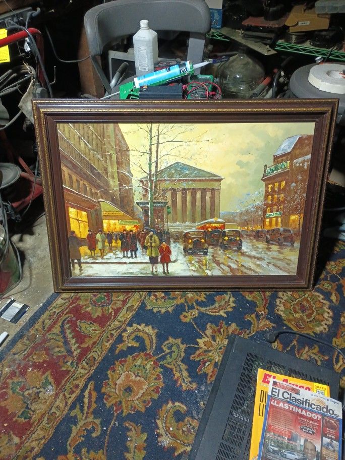 Cuadro antiguo de Paris Street scene EN OIL ON CARVAS BUENAS CONDICIONES.29"X 41".