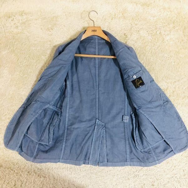 This stylish blue tailored jacket from NEEDLES is perfect for spring and summer. It features a center bend design and is crafted from a comfortable cotton-linen blend.