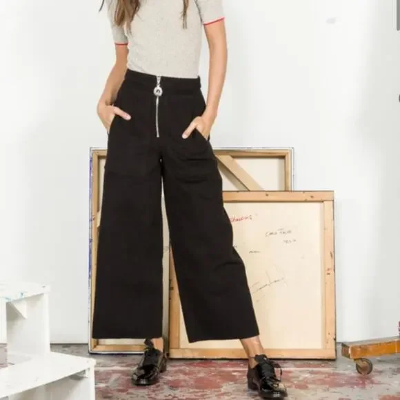 NEW Edun Denim Cropped Leg Pant NWOT New without tagsITEM DETAILSWide leg pant from Edun in Indigo. Contrast topstitching and exposed front zipper closure. Fitted waist. Front patch pockets. Raw denim color.- Made in KenyaFIT TIPFits true to size.
