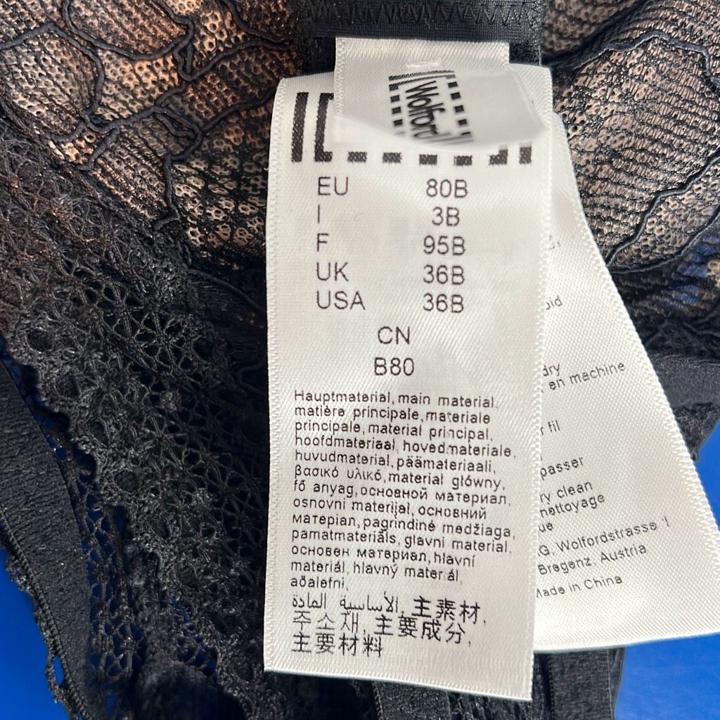 $175 NWT Wolford Nets and Roses Full Cup Bra. Size 36B - 80B. Color Black. This plunge bra is cut from a corded stretch lace with a beautiful net trim. Featuring underwire support and an unlined cup, this bra offers support with a barely there feel. Adjustable Straps. Matte Gold Hardware. Net Trim.