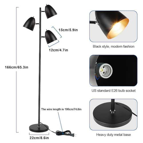 About This Product:The tall tree-shaped design of this lamp is very elegant. This floor lamp has 3 independent lampshades and each lampshade has a rotary switch, which can be individually controlled as required. Our upright lights include three 5-Watt LED bulbs that can be used for 50,000-hours and you will never change the bulbs often. LED bulbs can save up to 80% energy. Moreover, the base of this lamp is stable. Its sturdy golden lamp holder and pole have been processed by multiple processes, with bright luster, anti-corrosion and anti-rust, durable and not easy to fall off. Don´t worry if you have children in your family. So it is the perfect choice for a dining room, coffee shop or library.