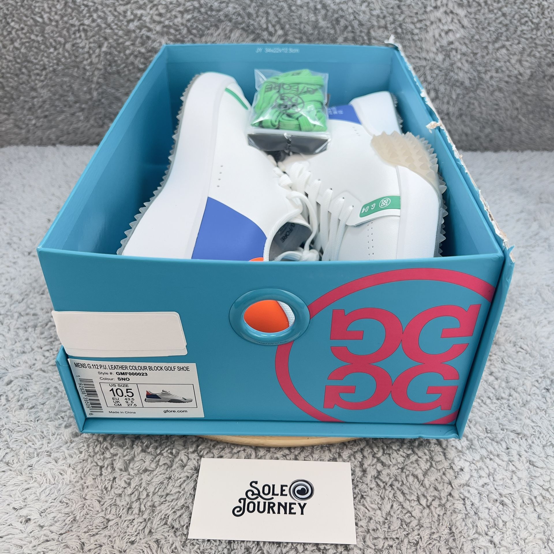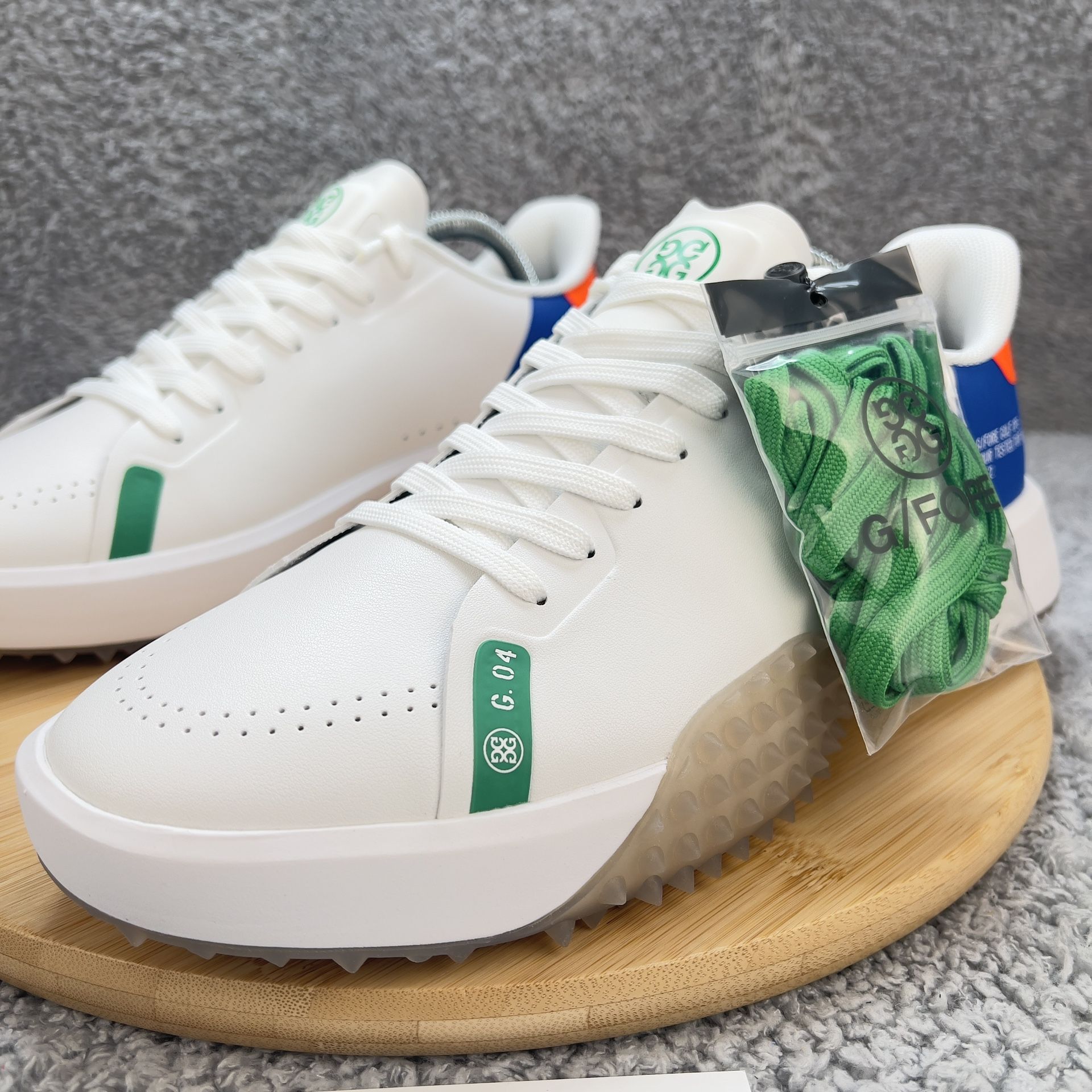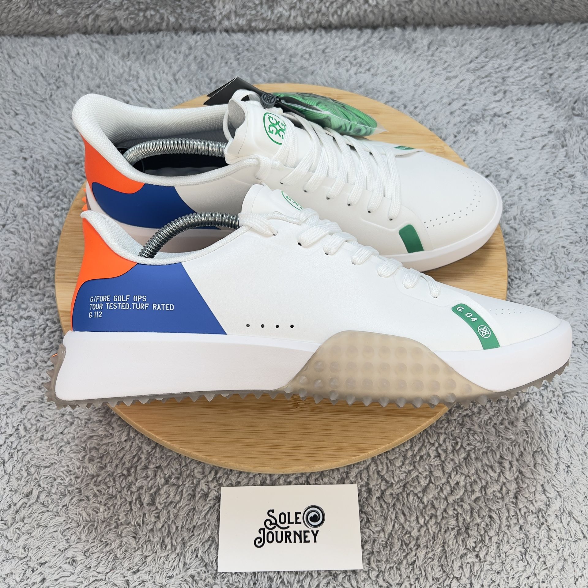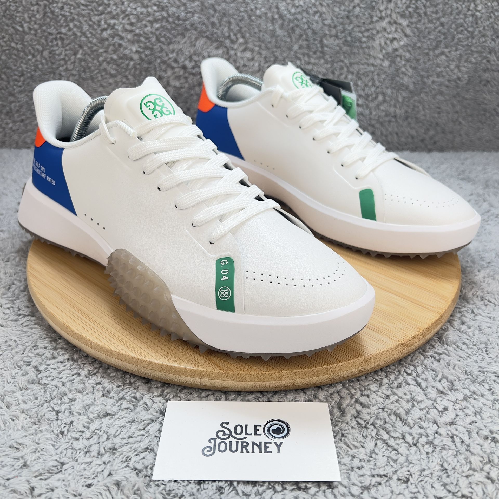 G/Fore G112 Golf Shoes Mens 10.5 White Blue Orange Leather Spikeless Turf Rated New - Box with no lidAll pairs are 100% AuthenticLocal pickups preferred in Dublin area (daily) or Fremont area (M-F); case by case meetups in other areasCash preferredNo trades, no lowballs, no flaking, first come-first serve
