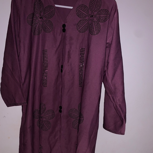 Purple,kids Muslim abaya,I payed a lot for this and got scammed after I put grown it very quickly sadly but this I would recommend for 10-11 year old girls black designs on it still some might fall off on the way they are delicate.