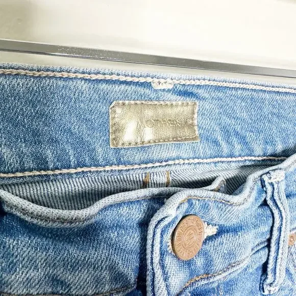 Mother Jeans Pixie Dazzler Ankle Fray Shoot to Thrill Straight Leg Jeans 28Excellent preowned condition, no flaws.Size: 28Made of cotton, polyester, elastane Stretch: yesCare: machine washClosure: button flyStyle Notes: light wash, high rise, straight leg, ankle length, raw hemTags: revolve, mother, denim, jeans, light wash, summer, spring, trendy