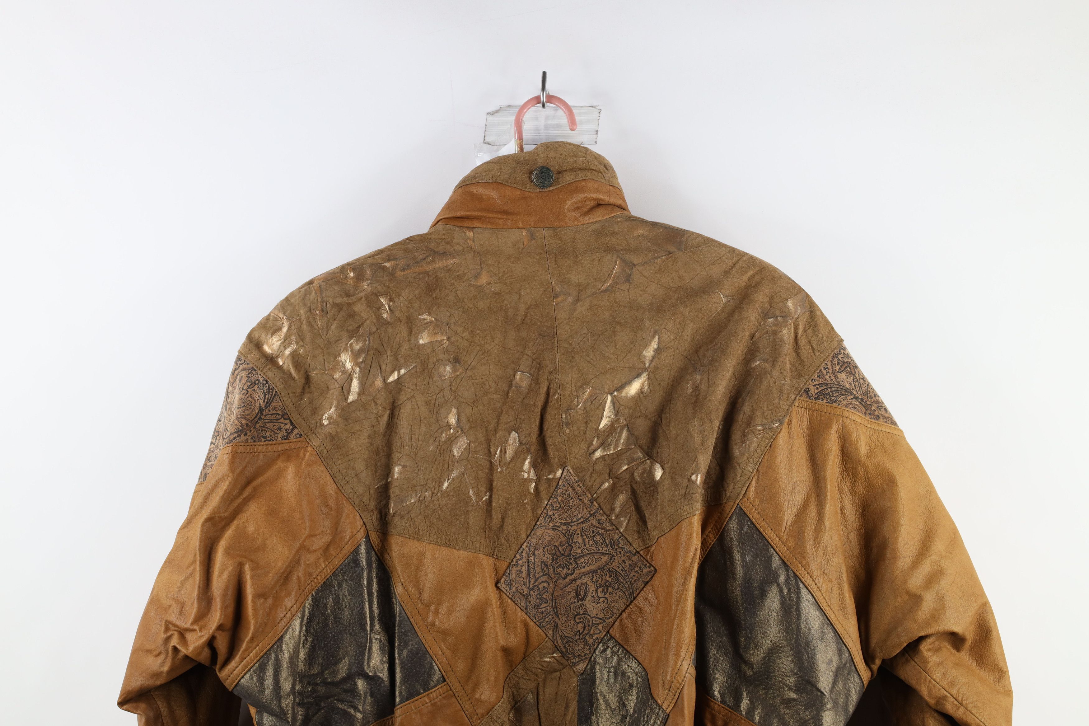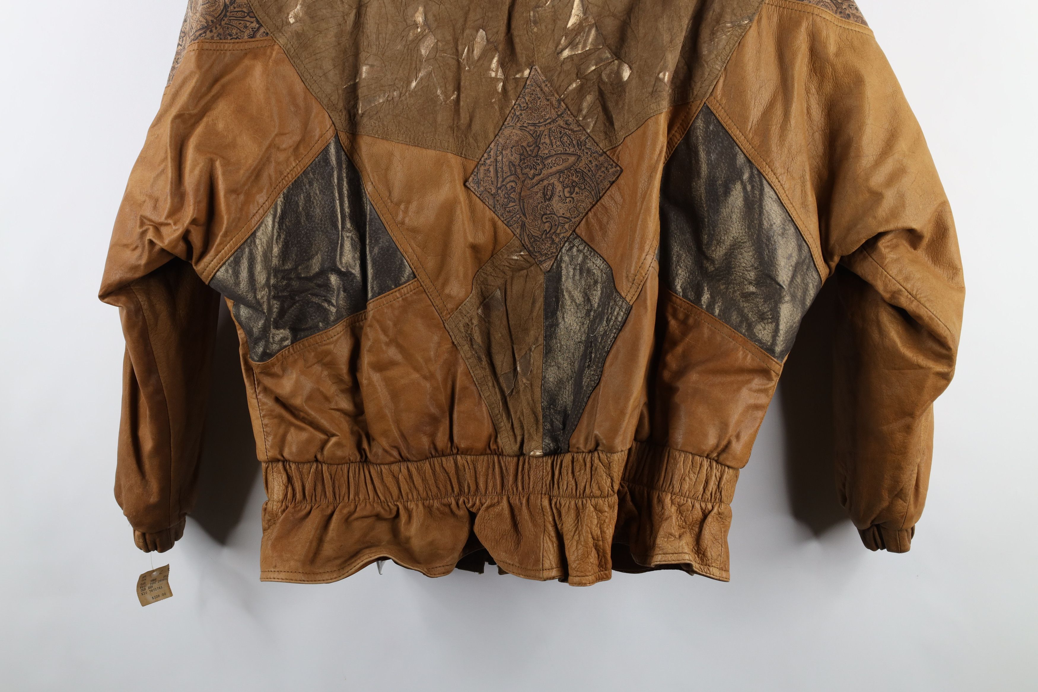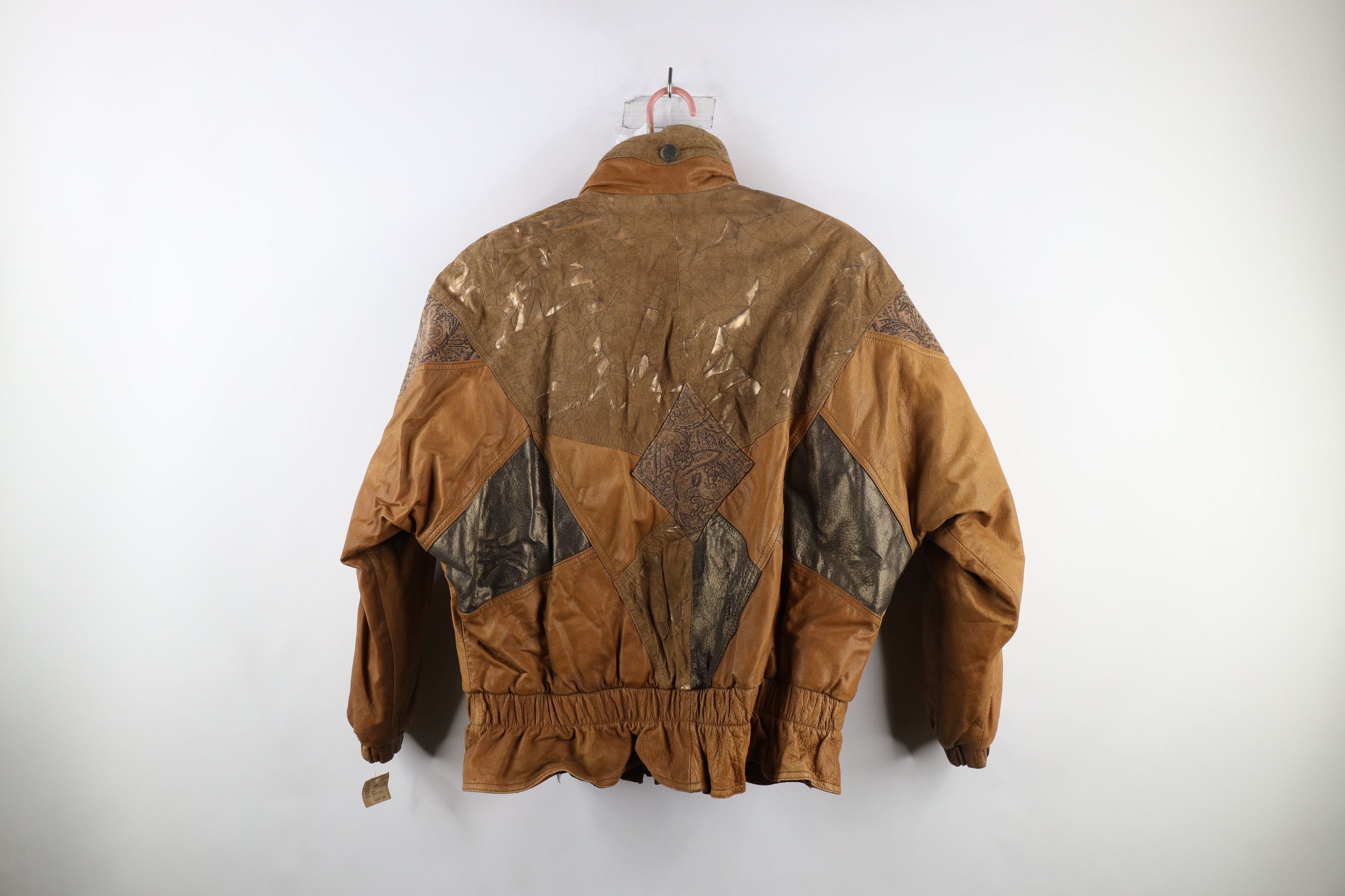 Deadstock Vintage 90s Streetwear Womens Large Patchwork Leather Bomber Jacket