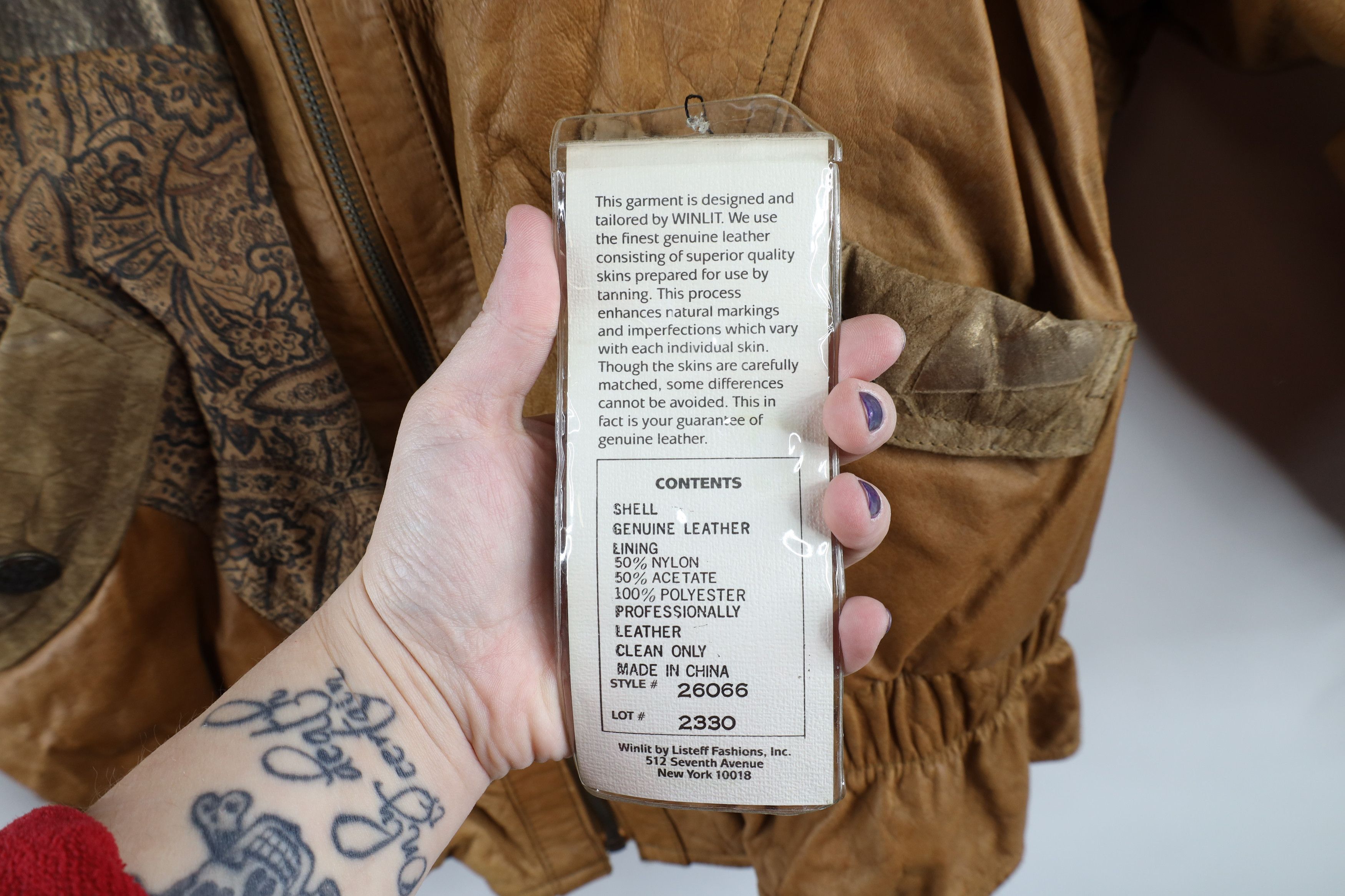 New with defects. Stains both arms, shoulders. Blemishes throughout. Distressed and faded. Has musty scent