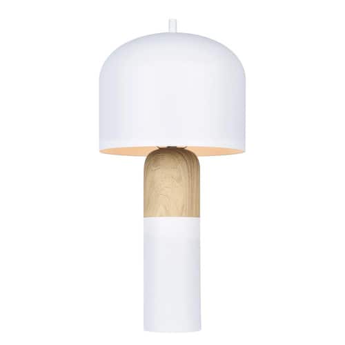 About This Product:Introducing CALEB, a sleek and stylish 1-light table lamp that brings warmth and ambiance to any room. Featuring a modern Matte White + wood color scheme and equipped with an on-off switch on the cord, CALEB offers convenience and versatility. With dimensions measuring 9 in. in width and 18.25 in. in height, this table lamp is the perfect size for bedside tables, desks or accent tables. Illuminate your space with CALEB and add a touch of contemporary flair to your home decor.