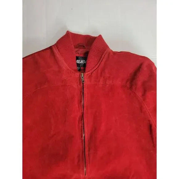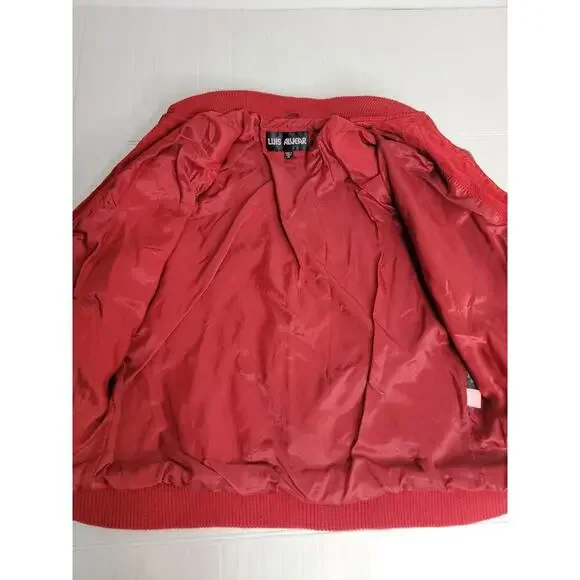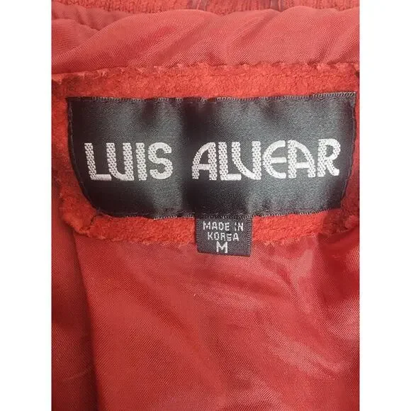 * Brand: Luie Alvear* Type: Unisex Vintage Red Bomber Jacket * Size: Medium/ Womens Large * Measurements: 24" Long/ 23" Bust/ 27.5" Sleeves From Collar/ 18.5" From Armpits* Condition: Great overall pre-owned condition. Minimal typical wear. Please review images for details. * Check Out My Other Items For A Combined Discount!