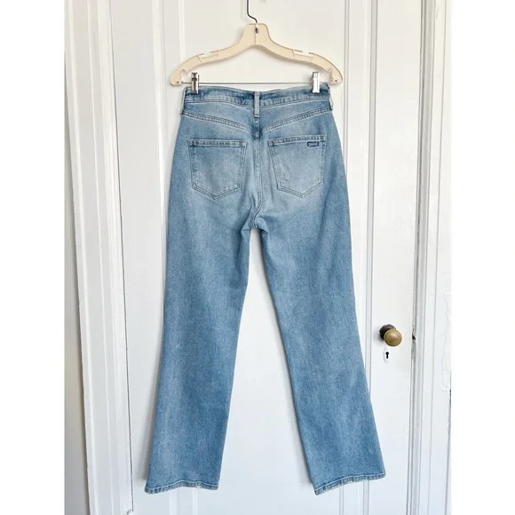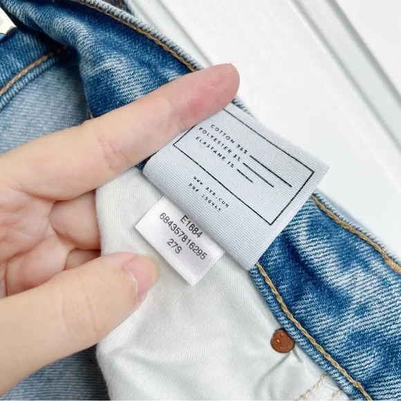 Fabulous high waisted straight leg jeans by AYR (All Year Round). Cult favorite “The Sugar” style in a medium blue wash with intentional fade/distressing/whiskering. Waist 29-30“, rise 11“, inseam 29.5“. Size 27 S (short inseam, check measurements), excellent preowned condition.All measurements taken with garment lying flat & doubled where applicable.