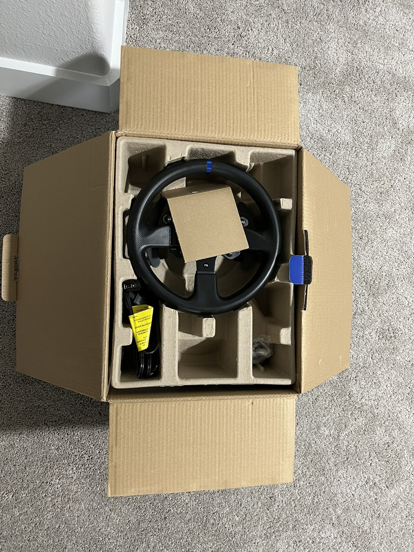 Thrustmaster T300 RS racing wheel and pedals. This model is compatible with PlayStation and PC. It’s like new and only used a handful of times. Has all the cables needed as well as the original box it came in.
