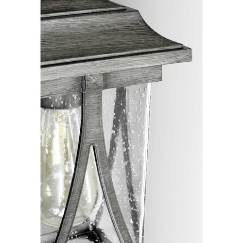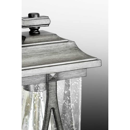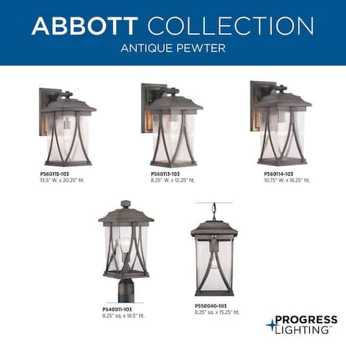About This Product:Distinctive forms with ancient roots are featured in this post lantern from the Abbott Collection. Transparency, depth and dimension are all on display to highlight the clear seeded glass and sweeping details within the Antique Pewter frame. Classic lines and sweeping details of the lantern design make it ideal for Traditional settings.