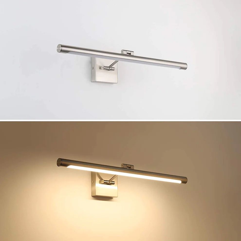 New in box.New 24" Modern LED Light Fixture Dimmable Brushed Nickel Artwork or Picture Accent Hallway with Single Swing Arm Full Metal for Painting LightsWarm White 3000K Hardwired ConnectionA148-3Features:* Lighting Direction Adjustable over pictures - The picture light’s arm and light´s tube (24.4" inches) can be rotated UP and DOWN 180° to adjust the lighting direction to your desired position. Different beam angles can be achieved for accent lighting.* Brightness DIMMABLE - 5%-100% dimming range; the painting lights are compatible with most household triac LED dimmers for smooth and flicker-free operation.110V working voltage - This art picture lights for paintings is with 100-120V AC working voltage, not battery operated. Hard-wired connection to 110V AC power.* Premium Quality: Full metal construction for outstanding durability; Brushed nickel electro-plating process ensures reliable surface finishing color and safe usage. Low heat emission best preserves your artwork throughout its long service life.* Single Arm Design - Single metal swing arm design ensures the painting light looks more modern. This will be one perfect unique swing arm wall light for paintings in the bedroom bedside, bathroom, indoor house, or farmhouse.* Easy Installation & Multipurpose - Very easy to wall-mounted with provided screws. Good choice for lighting up your paintings, artworks, pictures, mirrors, dart boards, photos, etc. It can also be used as a desk light bar for a desk against a wall or other accent scone lamps.