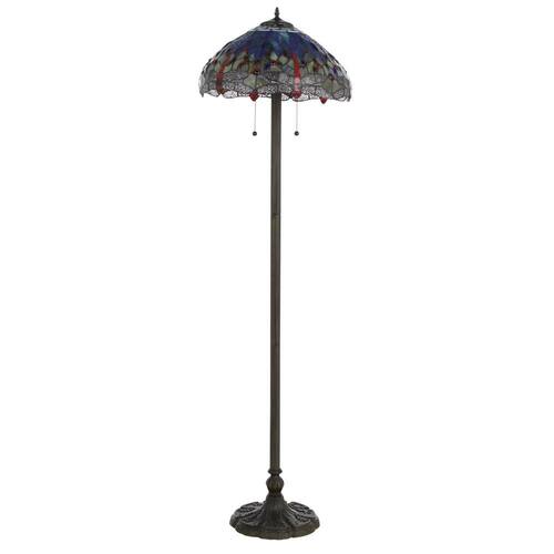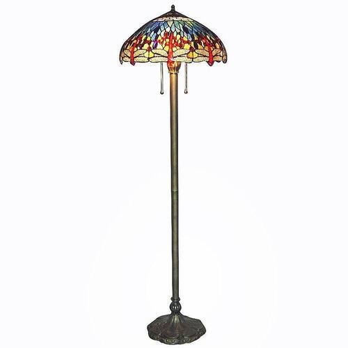About This Product:Dragonfly lovers will delight in this elegant Tiffany Style floor lamp. Handcrafted using methods first developed by Louis Comfort Tiffany, the shade contains hand cut pieces of stained glass, each wrapped in fine copper foil. Red dragonflies accent the rich blue, red and yellow shade. Perfect for any home or office.
