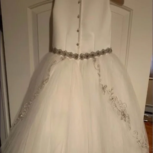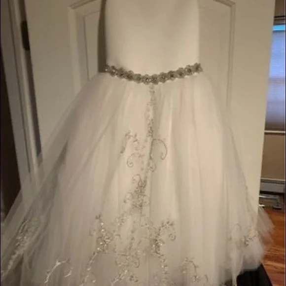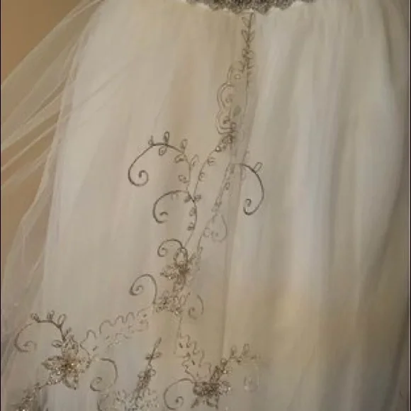 Used size 8 custom beaded gown. Will come with veil as well that matches.