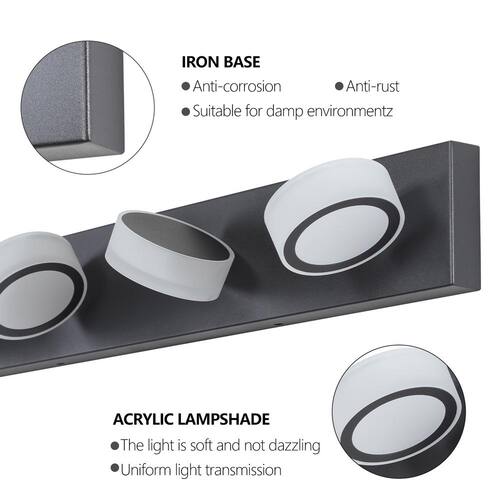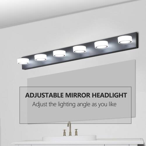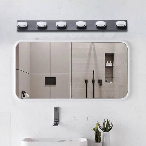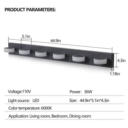 About This Product:Elevate your bathroom with this 45 in. Modern 6-Light LED Vanity Light Fixture in a sleek black iron finish. Designed with 6 acrylic shades, it delivers bright, uniform lighting perfect for makeup or shaving. Energy-efficient LEDs save on utility bills and last longer, reducing maintenance. Dimmable functionality (switch not included) lets you set the perfect mood. Easy to install with all hardware included-modern elegance meets everyday function.