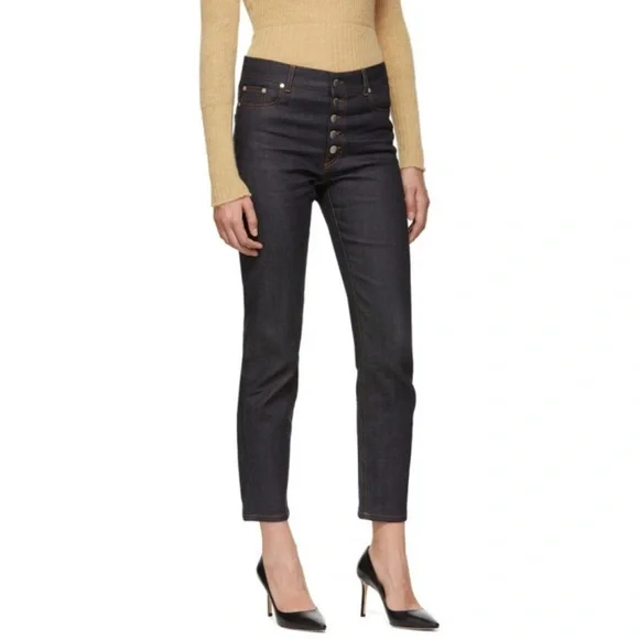 In really good pre-loved condition dark jeans from in size 26. Some Stretch to the jeans. Made in Italy. No flaws. Approximately about 38” length, 10” rise ,28” inseam, 6.5” leg opening. Silver hardwear. ❌no trades. Open to reasonable offers. Bundle more items to save more. Thank you‼️