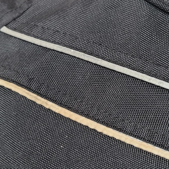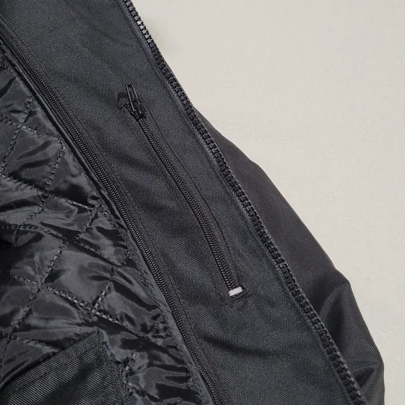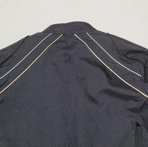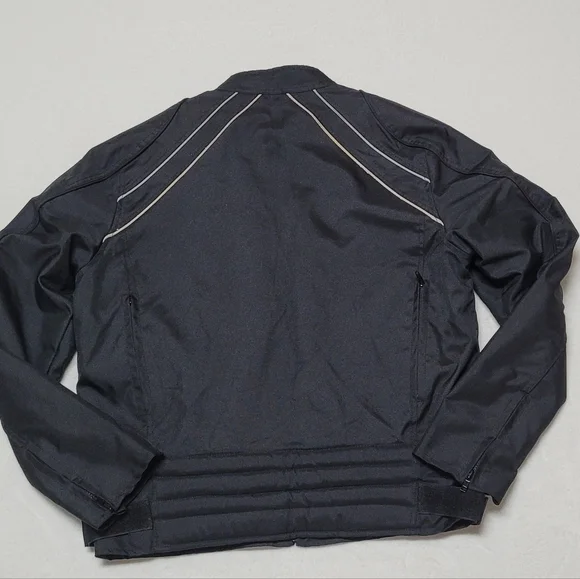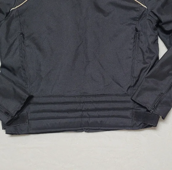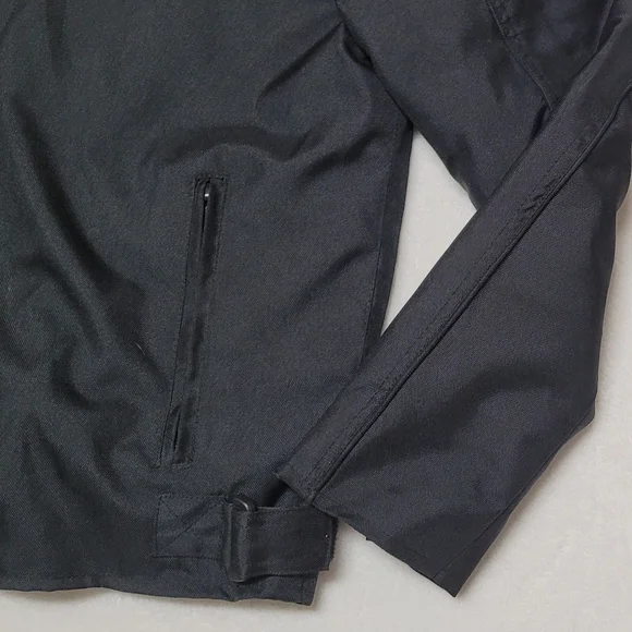 90s Vintage Zony Black Textile Full-zip Insulated Lining Motorcycle Jacket.- Black Textured Textile Fabric- Front and Back Piping, Wear on Piping- Air Vents- Long Sleeves with Zipper Cuffs- Full-zip Front with Snap Button Collar Closure- Fully Removable Quilted and Insulated Lining, Mesh Lined when Other Lining is Removed- Double Side Zipper Pockets- One Jacket Zipper Pocket- Three Lining Pockets- Thick Quilted Back Hem with Hook and Loop Adjustable Side StrapsSize LargeApproximate Measurements(Flatlay):Chest - 23.5 inchesLength (Shoulder Down) - 26 inchesVintage Retro Grunge Edgy Alternative Punk Motorcycle Coat Biker Jacket Tough Motorcycle Jacket Motorcycle Jacket