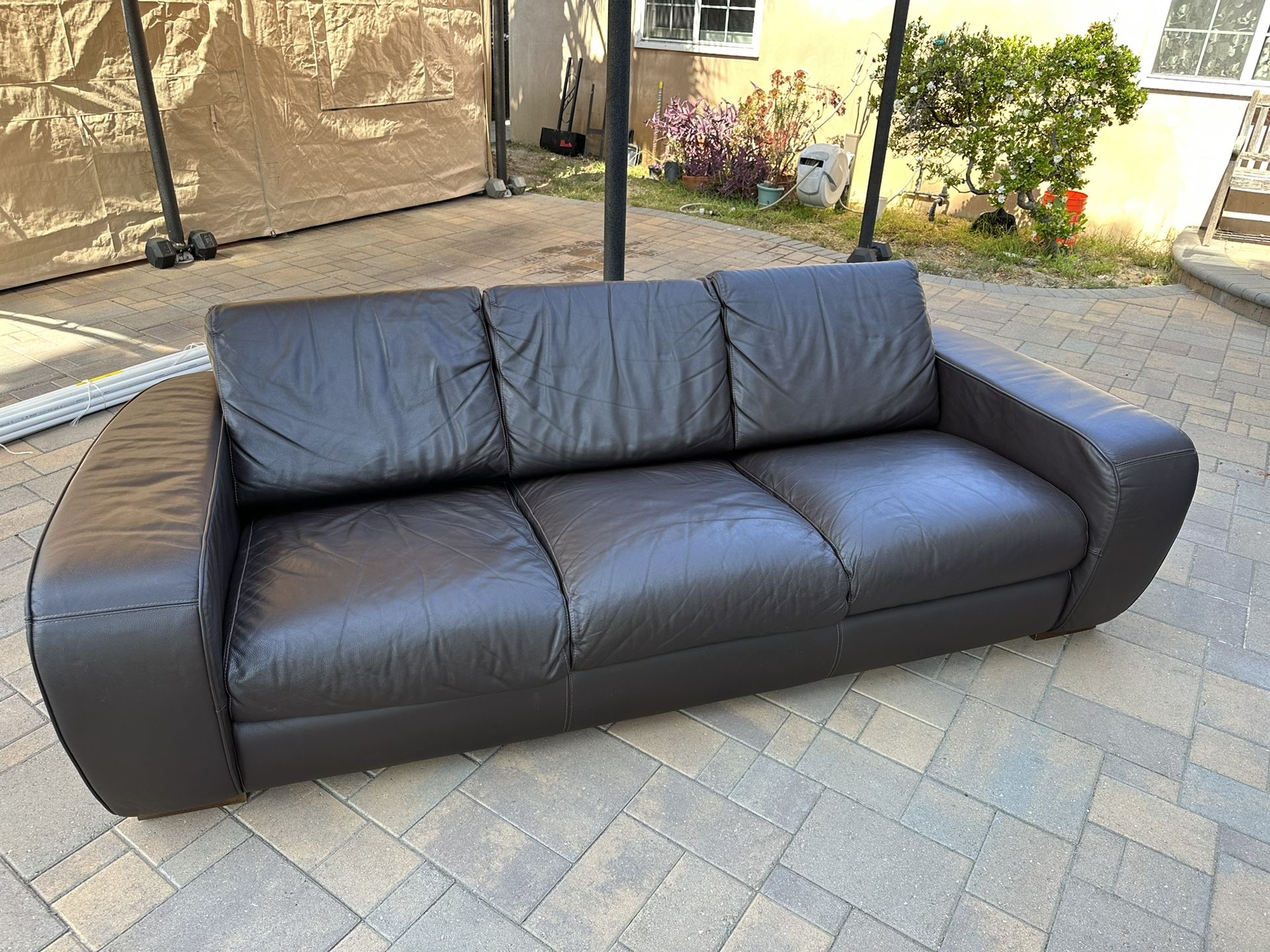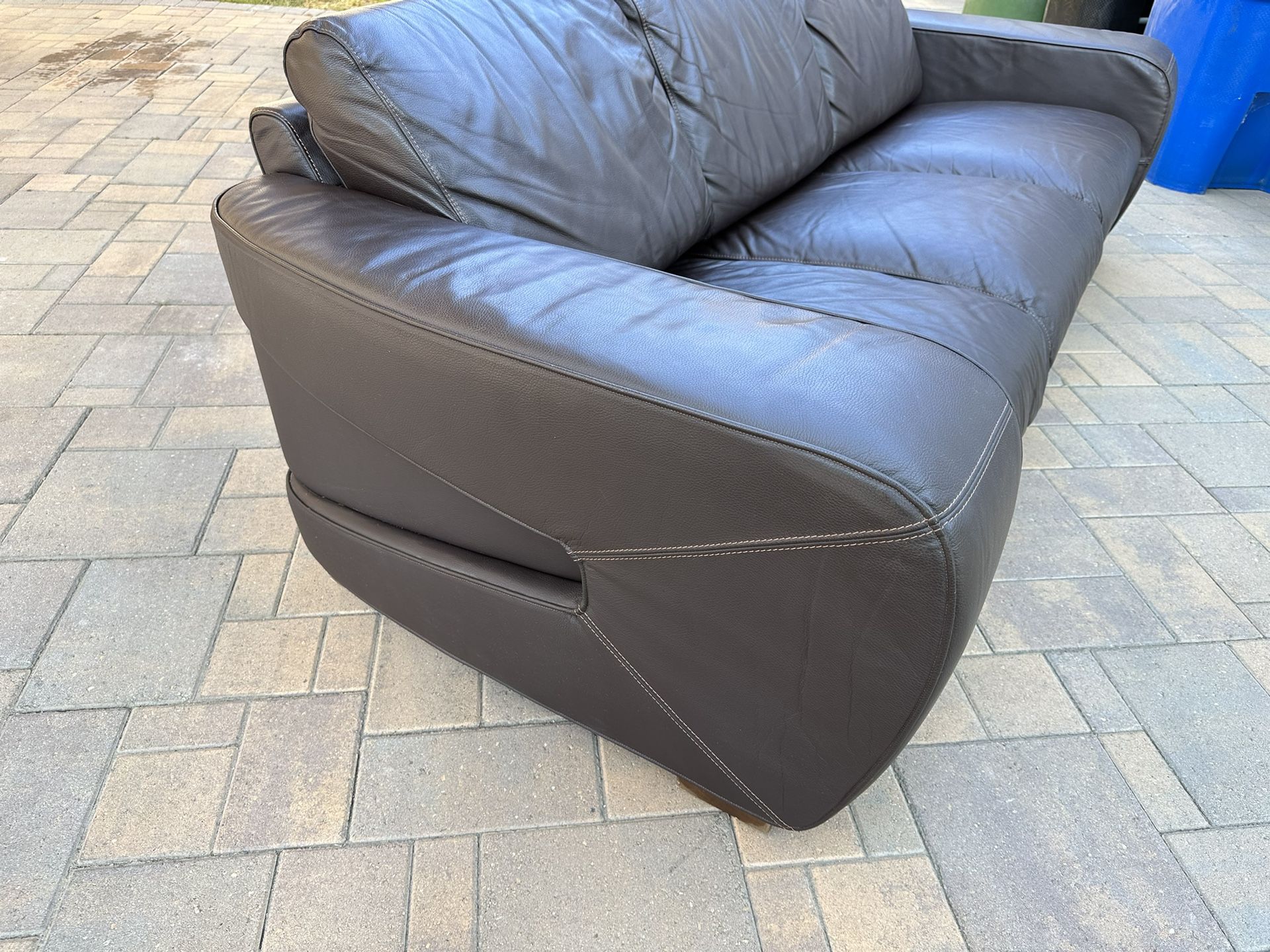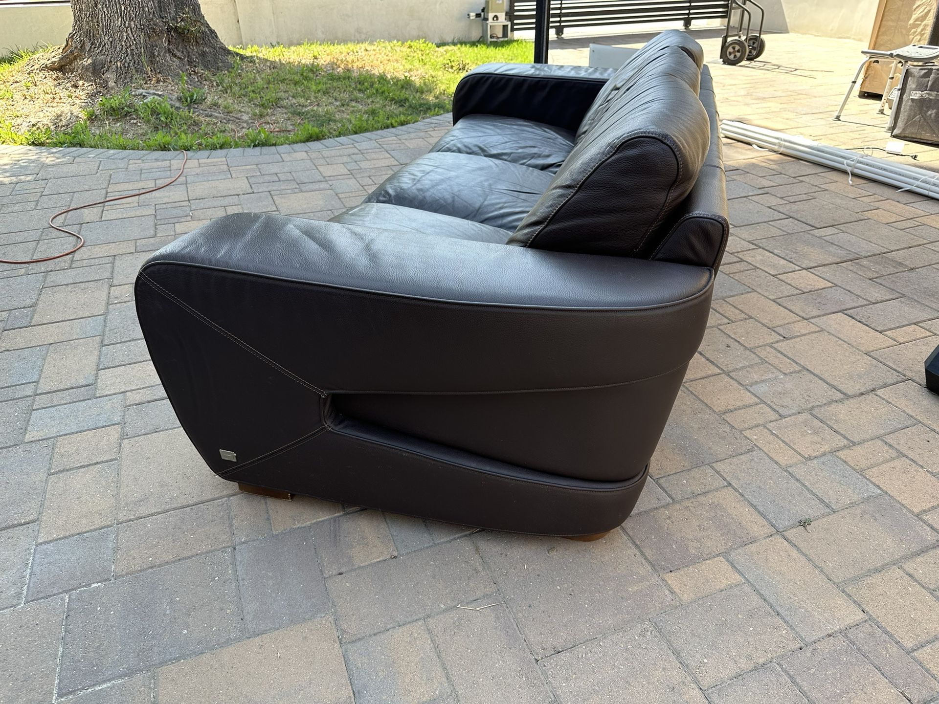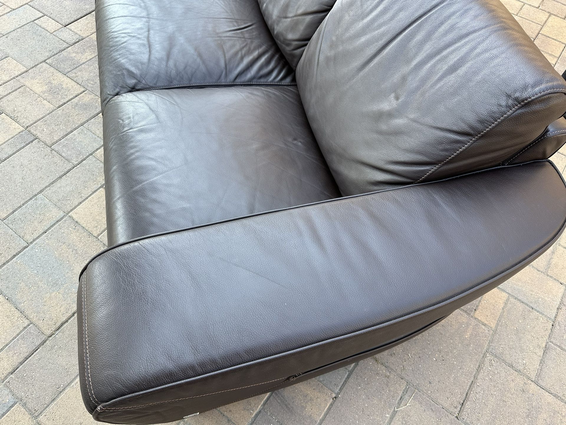 Italian Leather Sofa and ArmchairThis is a high quality Nicoletti Sofa and Armchair in great condition, it has orange stitching. It was wrapped in storage thats why it’s a little bit scrunched up but it will stretch out. Any questions please let me know. ThanksMeasures: 94” x 40”