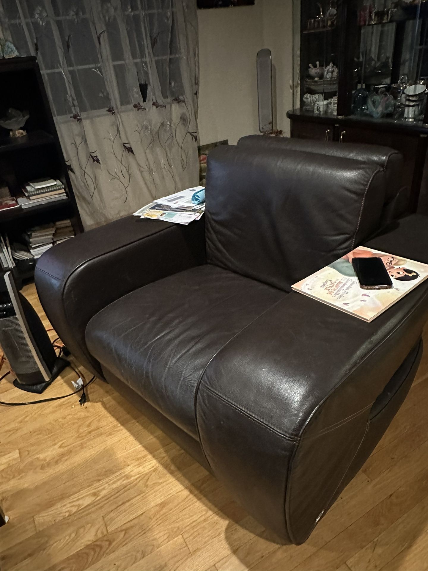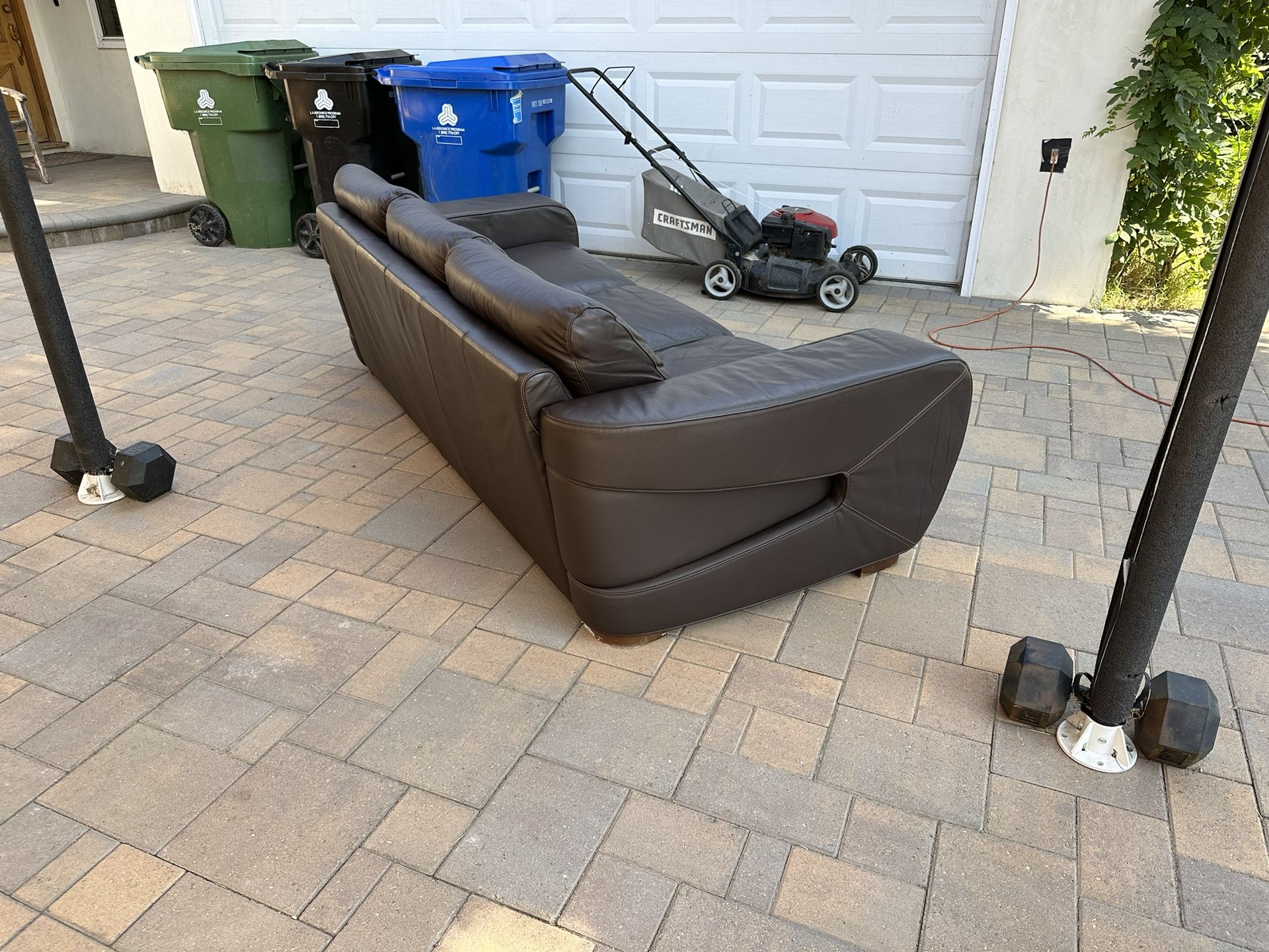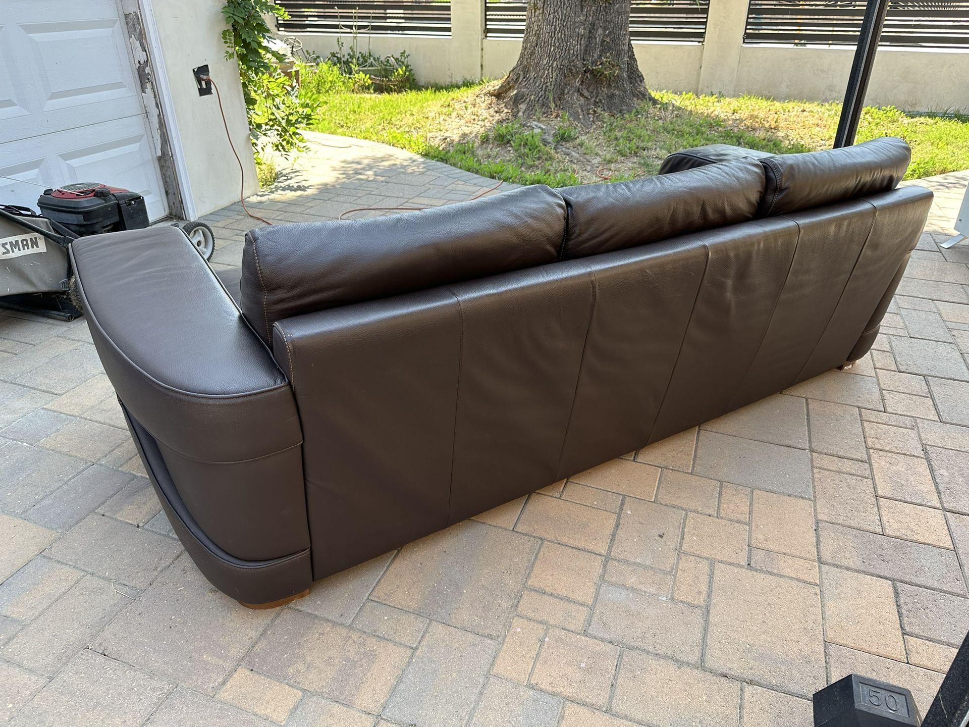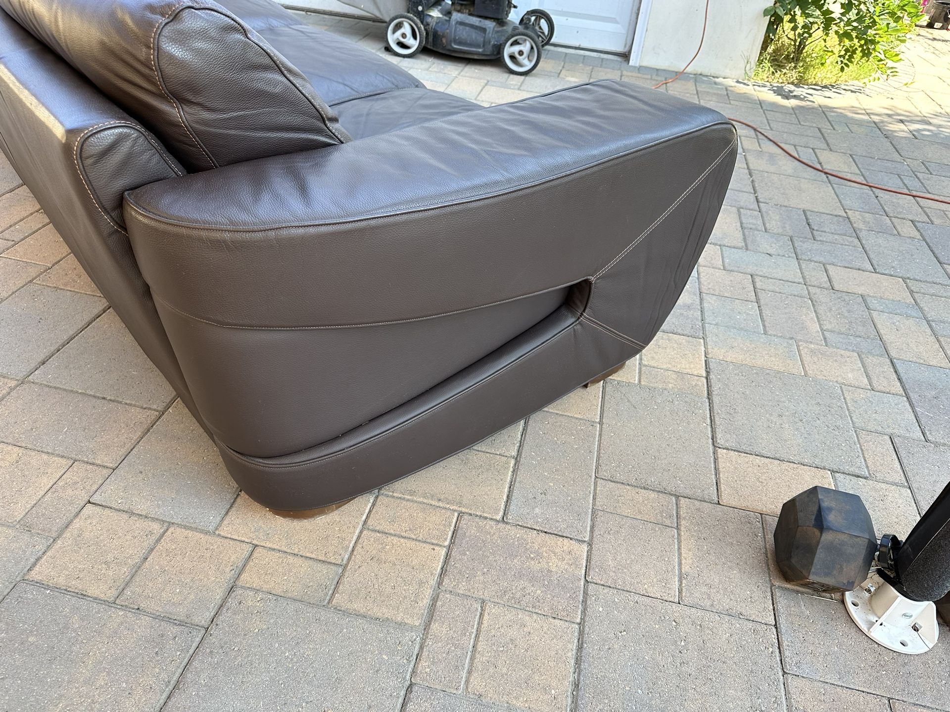 Italian Leather Sofa and ArmchairThis is a high quality Nicoletti Sofa and Armchair in great condition, it has orange stitching. It was wrapped in storage thats why it’s a little bit scrunched up but it will stretch out. Any questions please let me know. ThanksMeasures: 94” x 40”