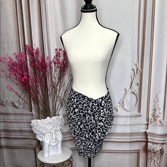 This chic mini pencil skirt by Isabel Marant features a striking black and white design, perfect for a night out or cocktail event. The ruched detailing adds a touch of sophistication, while the form-fitting silhouette ensures a flattering fit. Elevate your evening ensemble with this stylish and versatile piece.