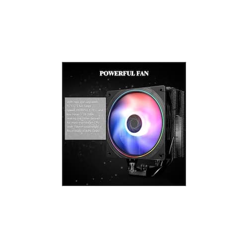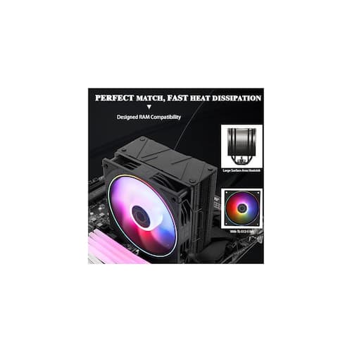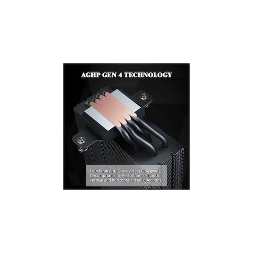 About This Product:Upgrade your PC´s performance with this advanced CPU cooler featuring 4th generation AGHP technology and a high-efficiency all-aluminum build for maximum heat dissipation. Its 120mm PWM ARGB fan delivers outstanding airflow with whisper-quiet operation, ensuring your system stays cool even during demanding tasks. Wide compatibility with Intel and AMD platforms and a sleek black anodized finish make it the perfect choice for both serious builders and style-focused gamers.