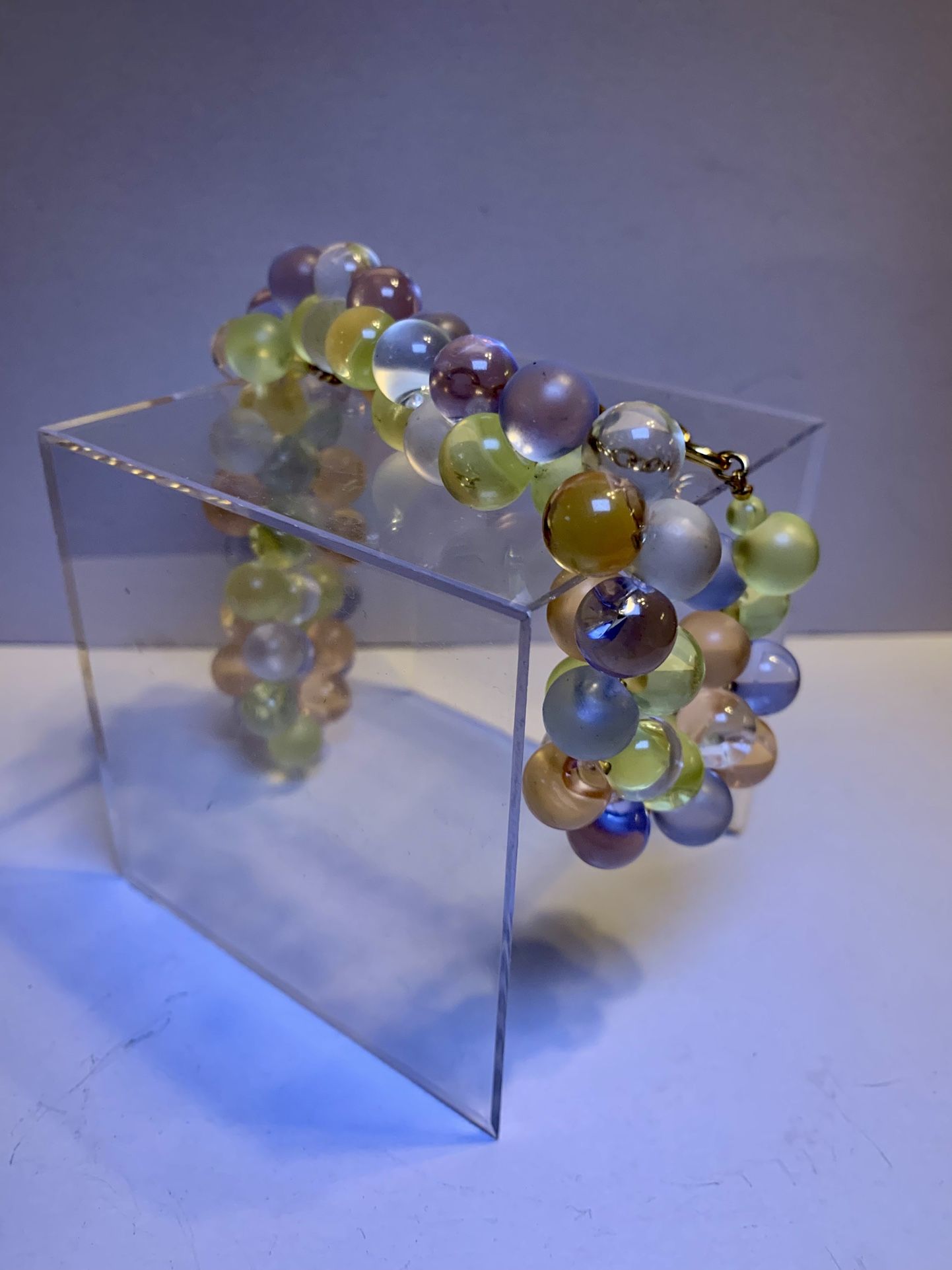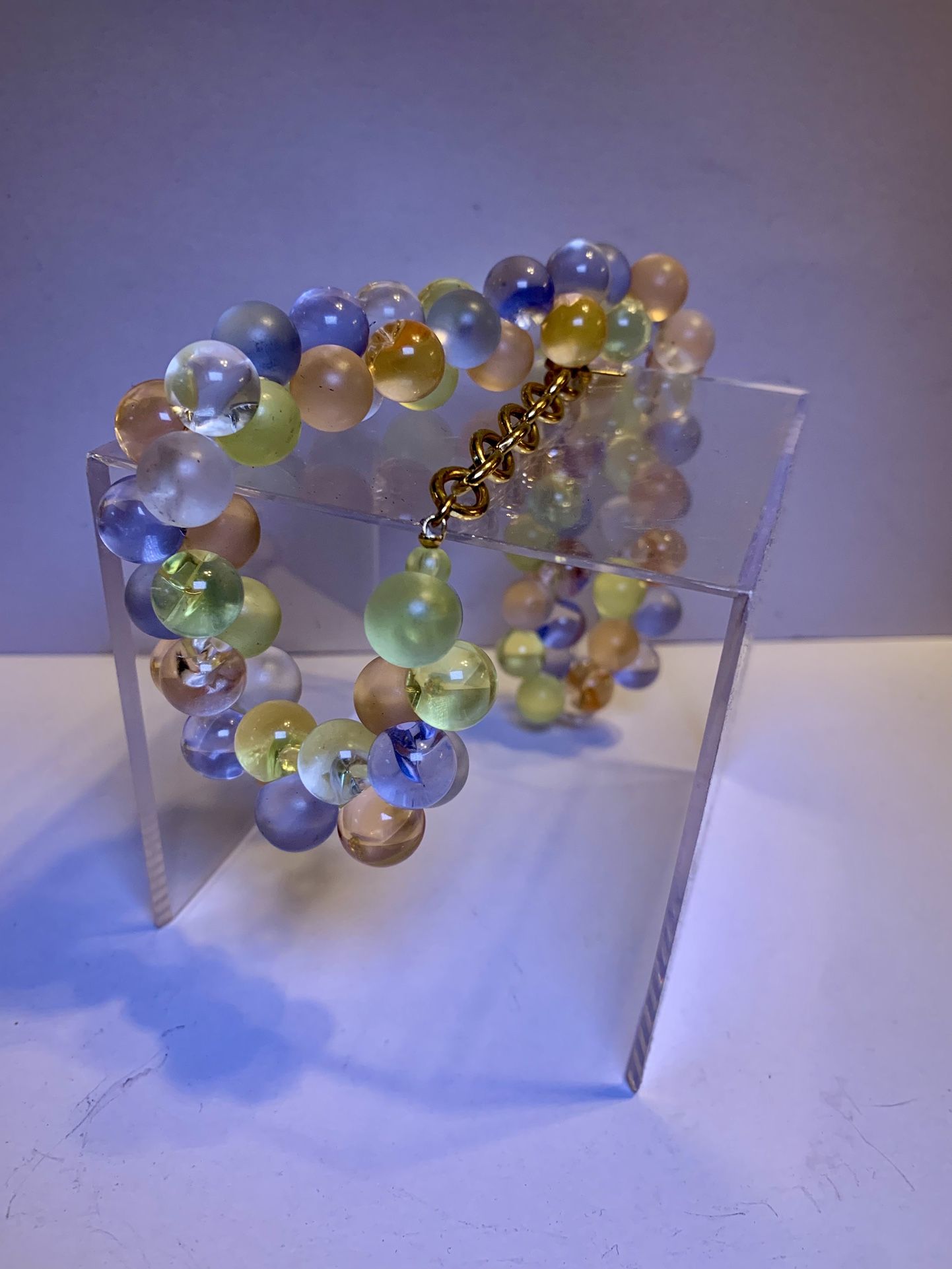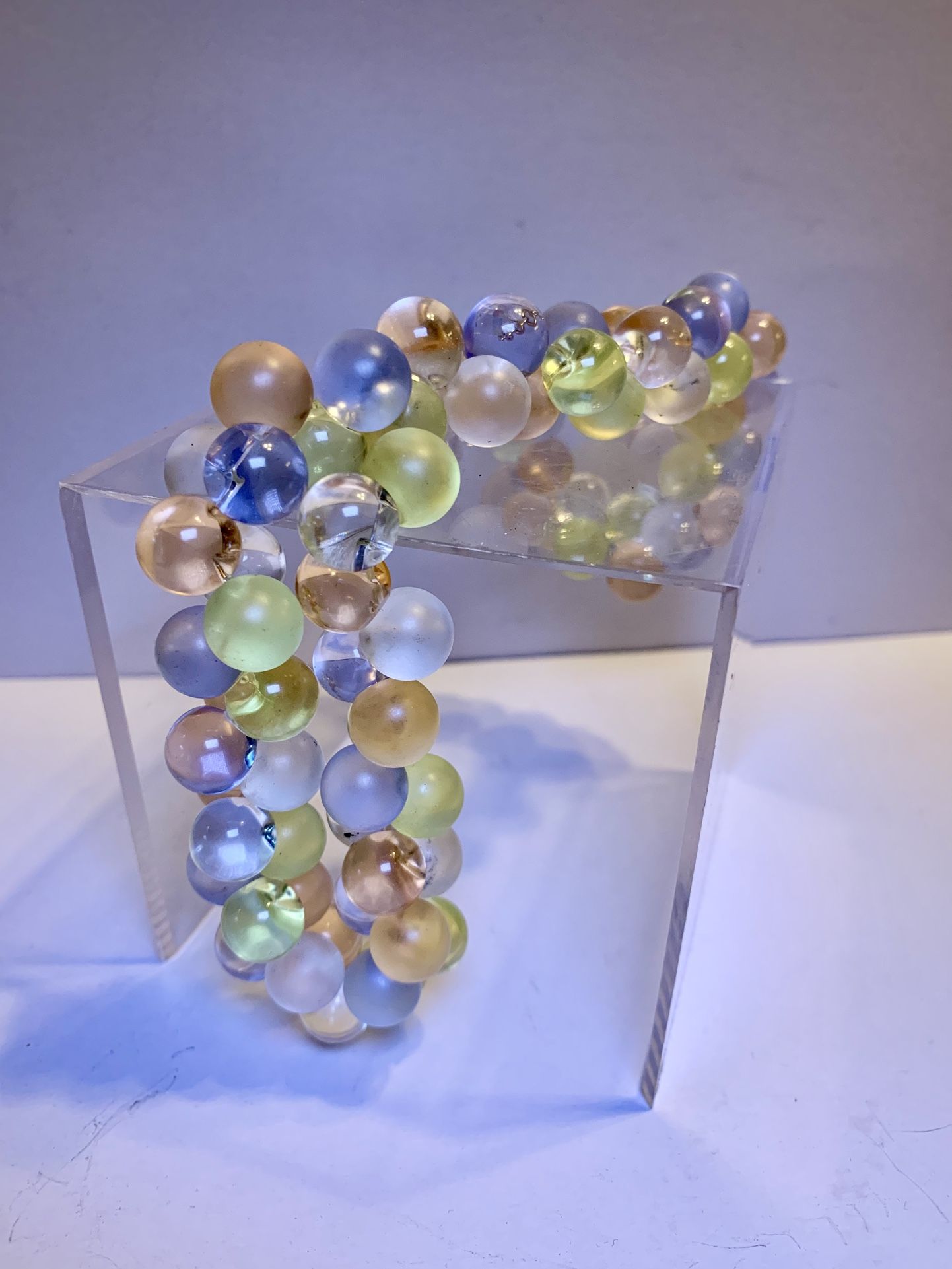This is a Vintage Monet Wisteria Lucite Pastel Bubble Beaded Runway Designer 18” Necklace/bracelet Hang TagIt is alternating Frosted and Vintage Clear Pastel Bubbles.It’s absolutely gorgeous! My mom loved exquisite jewelry. $80 for pick-up