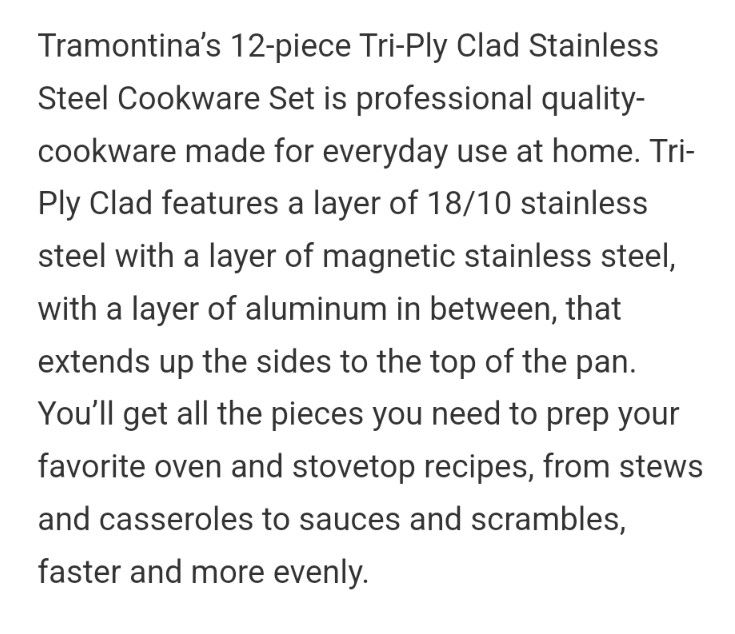 12 Piece Tramontina Stainless Steel Cookware Set