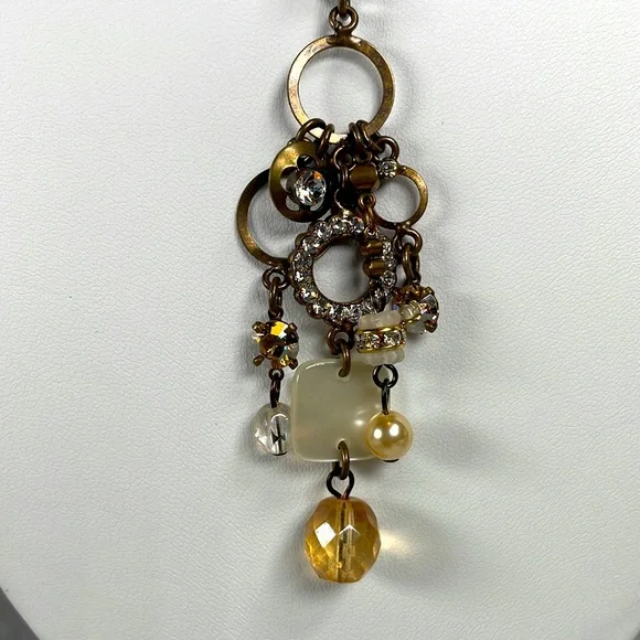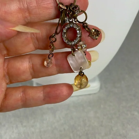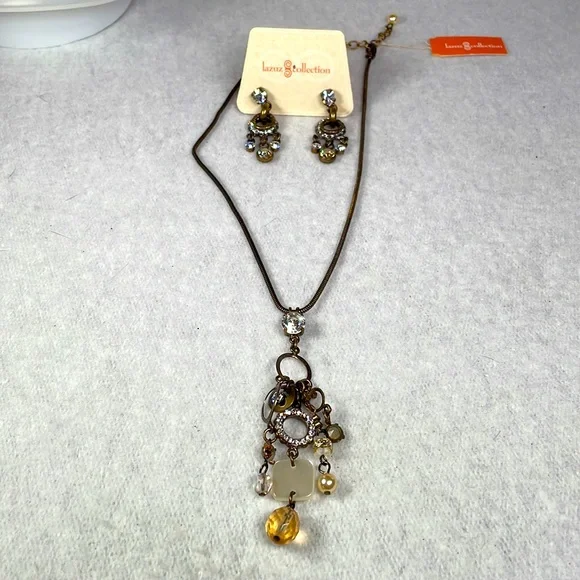 This fun 19” bobble necklace with a 3” drop in front is handcrafted with vintage style elements, Austrian crystals with a gold tone snake chain by Lazuz Collection from the Mediterranean. The matching earrings have a 2” drop. Simply fabulous!