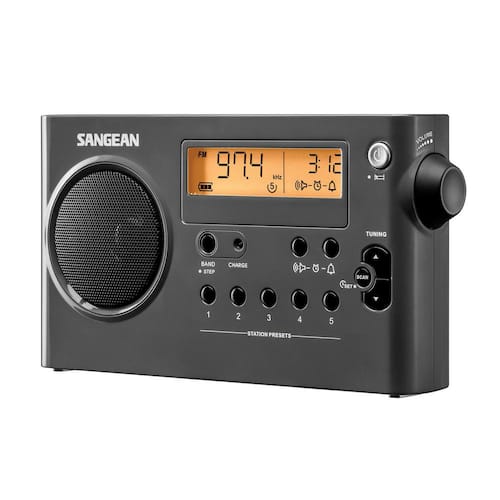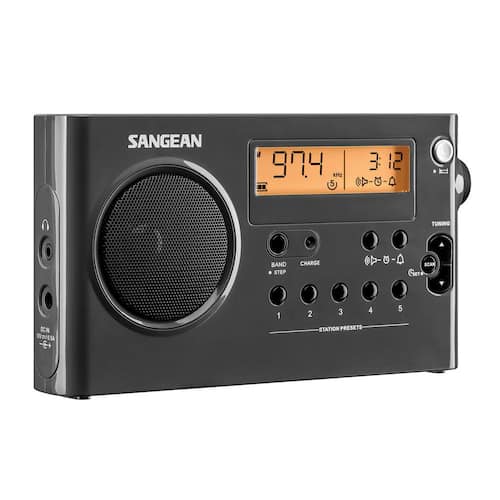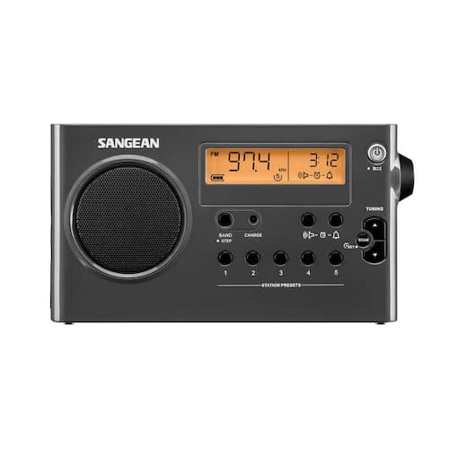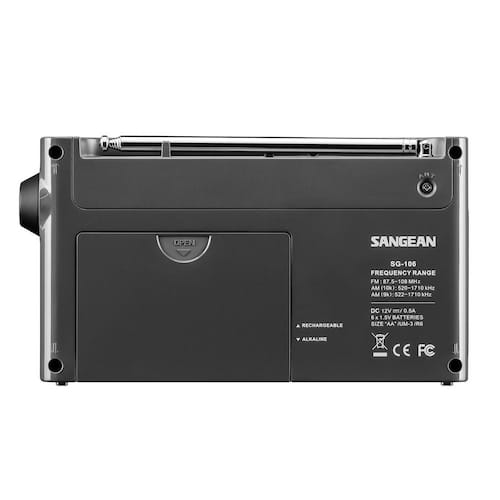 About This Product:The SG-106 is a True ultra-compact portable AM/FM digital Radio being ultra-compact in size (a mere 8 in. L and stands 4-1/2 in. tall and weighs 1.3 lbs.). All controls are conveniently located and you can see the frequency and time on the display. Tone is well balanced and excellent for both talk and music. The SG-106 has excellent sensitivity and selectivity and will surprise you at its ability to pull in those distant stations. 5 presets are available on each band and the auto seek will automatically seek the active stations across the entire band rather than to the next frequency. The radio can be set to automatically turn off after 120-minutes, 90-minutes, 60-minutes, 45-minutes, 30-minutes, or 15-minutes, so you can fall asleep to the sound of music, talk, or news. Sleep alarm allows you to wake up to music or beeper with humane wake-up system. You can power It with the included AC adapter, or 6 AA Size batteries (not included). In addition the SG-106 can be powered with 6 rechargeable AA batteries which you can charge right in the radio. Headphone jack turns off speaker when headphones are used. Powered by Both Rechargeable and Dry Cell Batteries. Rechargeable with Battery Power Indicator. PLL Synthesized Tuning System.