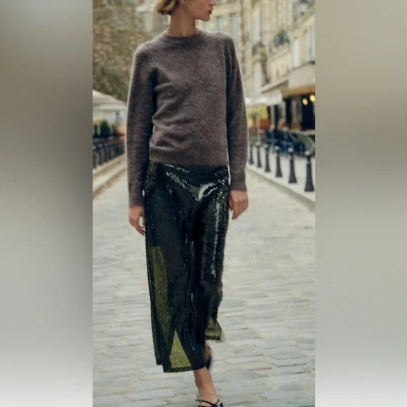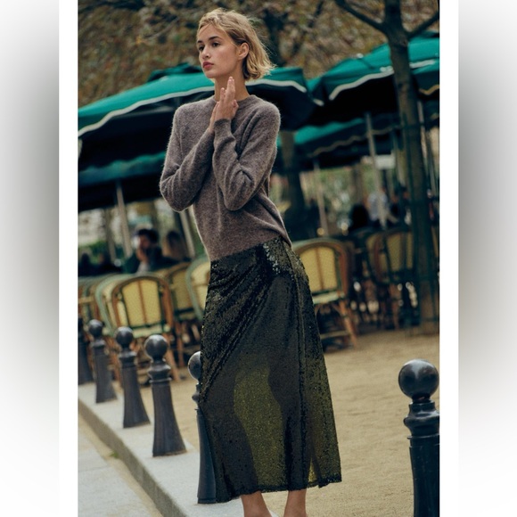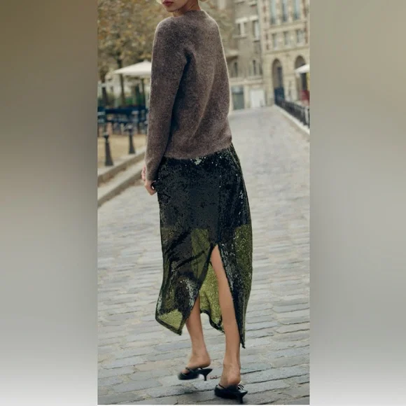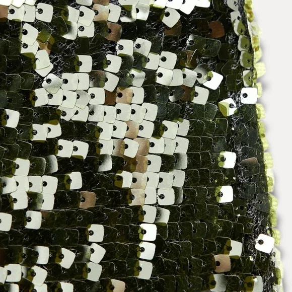 New with tag High-waisted skirt with sequins. Interior lining. Back opening. Back hidden zip closure.OUTER SHELL100% polyesterLINING100% polyesterGreen 2157/248/5001118