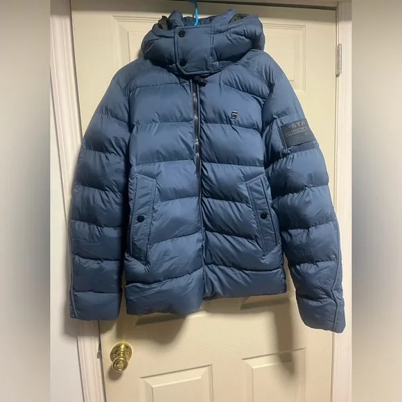 This G-Whistler hooded padded jacket is cut from a water repellent fabric, quilted in a horizontal stitch down. The detachable peak hood is constructed with a high raised front and offers pull cords inside for optimum protection. The peak can be fixated if preferred. Also the straight hem is adjustable, as there is a puller cord hidden inside. A heavy piping runs alongside the sleeves. This padded jacket offers welt pockets at the waist and a double inner pocket.MATERIALUNIC MATTE LITE RECYCLED WATER REPELLENTCompact, lightweight fabric made of super fine recycled polyester yarns. Additionally, the fabric is coated with a sustainable PFC-free water repellent finish for optimal functionality.Densely wovenOuter and Lining: 100% Polyester (Recycled)Padding: 100% Polyester (Recycled)Recycled polyester is produced from post-consumer or post-industrial waste materials such as PET plastic bottles and apparel. Material that would otherwise have been sent to landfill or to incineration.By giving discarded resources a new life, we save raw materials, water, chemicals and energy. Preventing further extraction of a non-renewable resource.This product is enhanced with sustainable PFC free high-performance water repellent finish.COLORRank Blue
