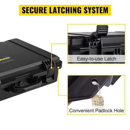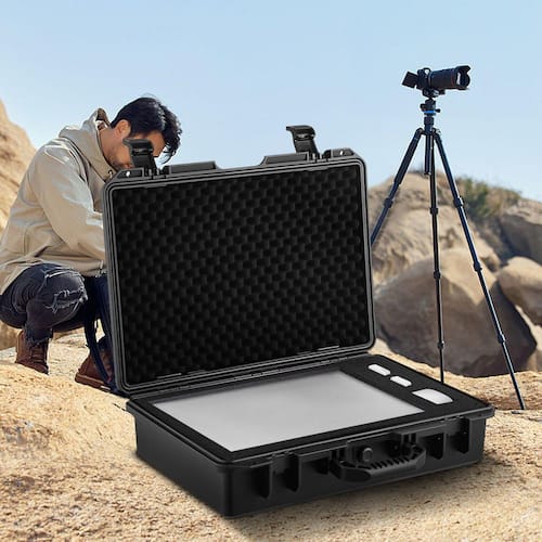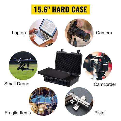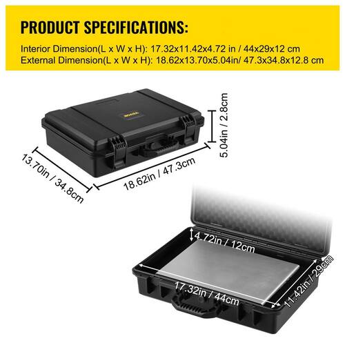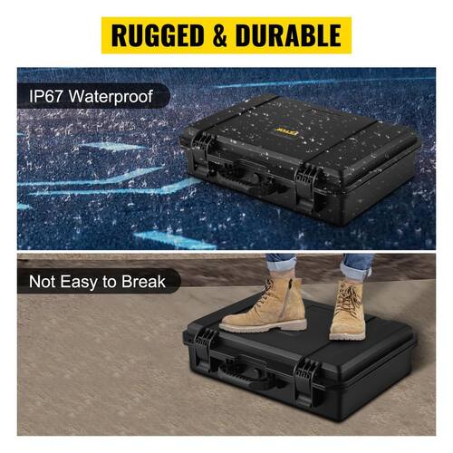 About This Product:This rugged hard case combines advanced protection with portability, designed to safeguard sensitive electronics and gear in harsh environments. Its IP67 waterproof rating and crushproof polypropylene shell ensure resistance to water, impacts, and crushing forces. Internally, three layers of shock-absorbing foam—including a customizable middle layer—minimize damage from vibrations or drops. The case’s 17.32 in. x 11.42 in. x 4.72 in. interior accommodates 15.6 in. laptops, cameras, drones, and fragile items, while secure snap latches, padlock compatibility, and a pressure-release valve enhance security. Weighing just 4.41 lbs. it features a lightweight build with a portable handle for effortless transport, making it ideal for professionals, photographers, and adventurers. Durable materials and adaptable foam organization ensure long-term reliability, allowing users to confidently carry high-value equipment on business trips, outdoor excursions, or fieldwork. Whether facing extreme weather, rough terrain, or urban travel, this case delivers uncompromising protection for critical devices.