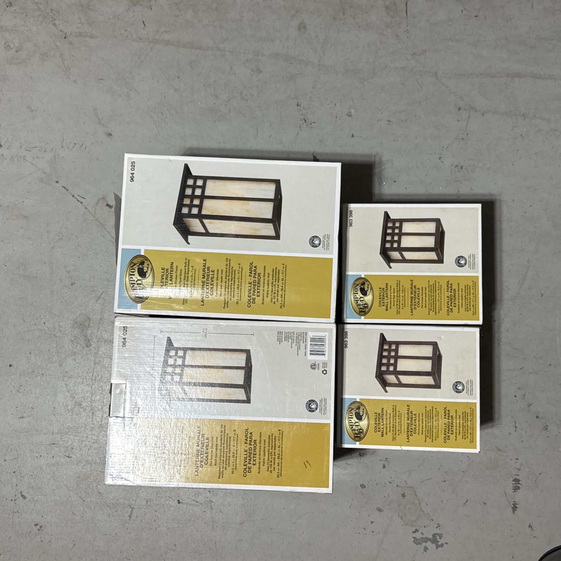 Hampton Bay exterior lights. Total of four lights (2 garage lights and 2 porch lights).