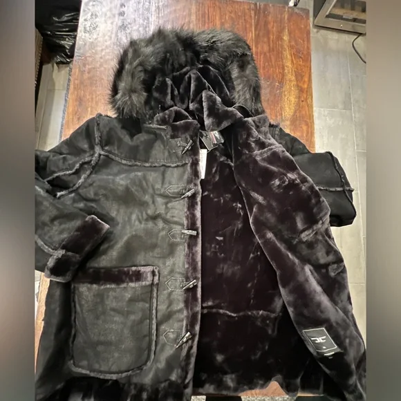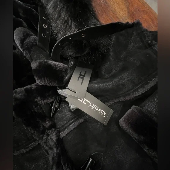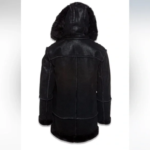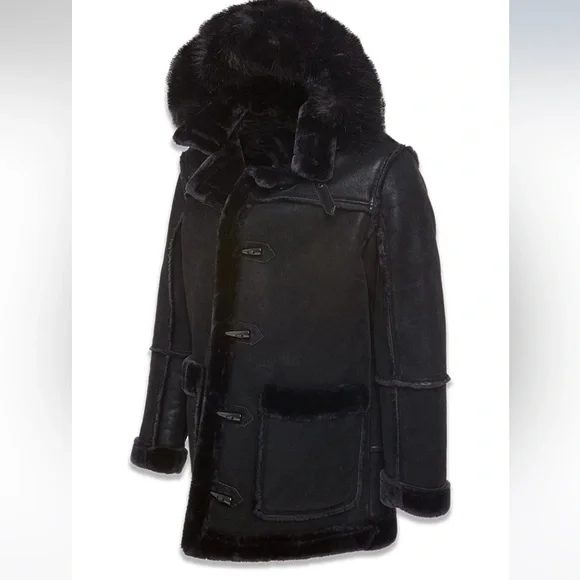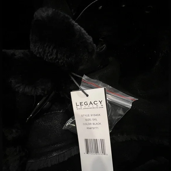 NEW Jordan Craig DENALI SHEARLING JACKET (BLACK)Size 5XLFaux suede bodyPlush faux shearling lining throughout body and sleevesShearling accented pocketsHorn toggle front closureVegan suede straps with buckle at neckDetachable faux fox fur hood with zipper