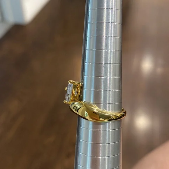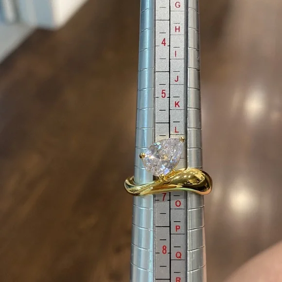 NWOTShips same daySold out in retailA pear-cut cubic zirconia stone brings elegant sparkle to a wavy band ring crafted from 14-karat gold.Size 7• 1/4"W x 3/4"L setting• 14k gold/cubic zirconia