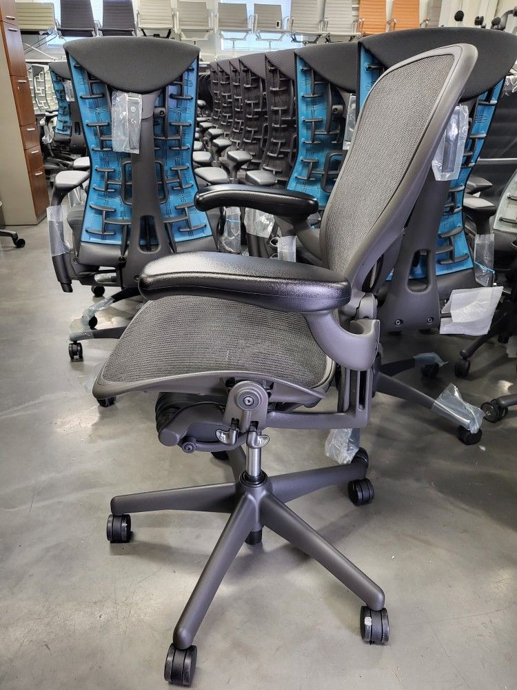 "The largest selection of Herman Miller, Steelcase, Aeron, Gaming Chair, Chair, Embody, Leap V2, Desk Chair, Chair, Office Chair, Office Furniture, and Stools!We will beat any price and price match! (chair must be in similar condition).Prices Starting at below is out-the-door flat!Prices:Size A $550- $599Size B $450- $599Size C $550- $699Our chairs come fully loaded (unless stated) with the following options:- Size A, B, C- Lumbar or +$100 for Posture-fit SL- Tilt Limiter and Seat Angle- Fully Adjustable Arms- Standard or Leather Armpads- Atlas Headrest +$150- Ask us for any additional modifications you need100% Authentic or 100x money back and still with original tags and packaging.Safe, trusted, and with 200+ 5-star reviews!We are not associated with anyone else.Every NEW chair comes with 12-year original manufacturer warranty and any USED chairs come with our own 1-year warranty in addition to any remaining manufacturer´s warranty.Free local delivery within 10 miles. $40-99 shipping or delivery greater than 10 miles."